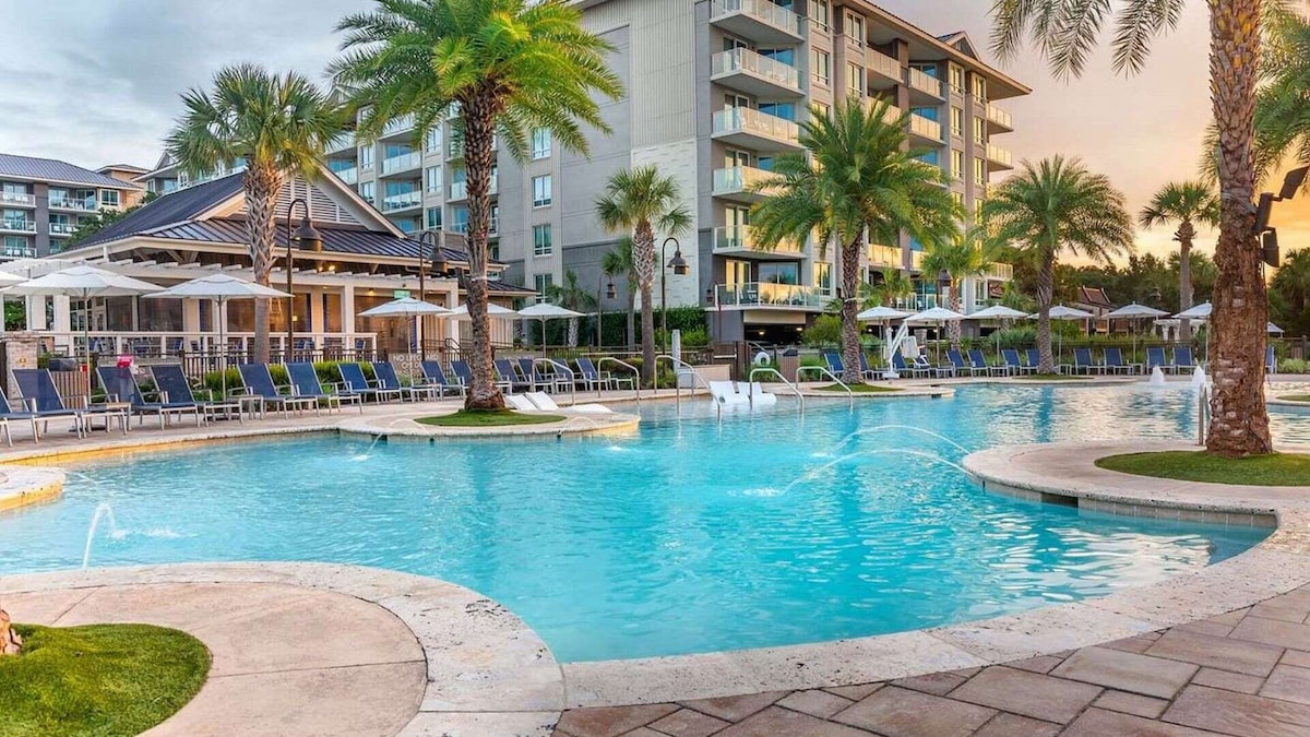 ✨ About this Space ✨ 🛏 2 bedrooms, 2 bathrooms 🍳 Custom kitchen + coffee bar 🌅 Porch overlooking the pool 🛏 Master suite with king bed & private bath 🛏 Bunk room with 2 twin beds 🏊 2 seasonal outdoor pools 🏊♂️ 1 heated indoor pool 🧖 Hot stone sauna & gym 🎾 Tennis courts 🏖 Private beach access 🚗 0.5 mile from Hilton Head Airport 🌴 Quiet north end of Hilton Head