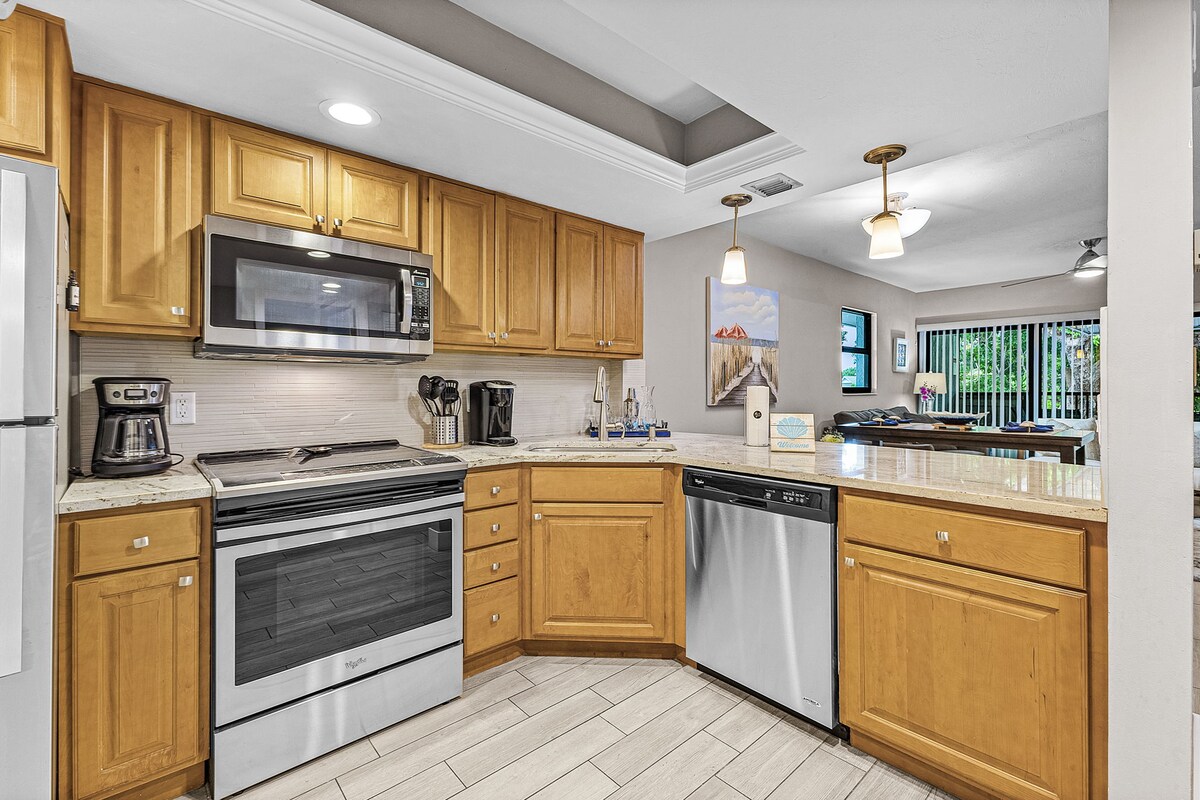 Ya sea que estés buscando unas vacaciones románticas y orientadas a la familia o tranquilas, ¡nosotros te ayudamos! ¡Nuestra unidad está escondida en el extremo sur de nuestro complejo, donde el goteo de la cascada fuera de tu lanai es el telón de fondo perfecto para disfrutar de tu café de la mañana o tal vez un cóctel de vacaciones! Nuestra unidad está completamente remodelada en un estilo costero moderno que es una combinación de clásico y contemporáneo, pero también habitable (tenemos dos niños pequeños). ¡El telón de fondo perfecto para tu estancia en el suroeste de Florida!