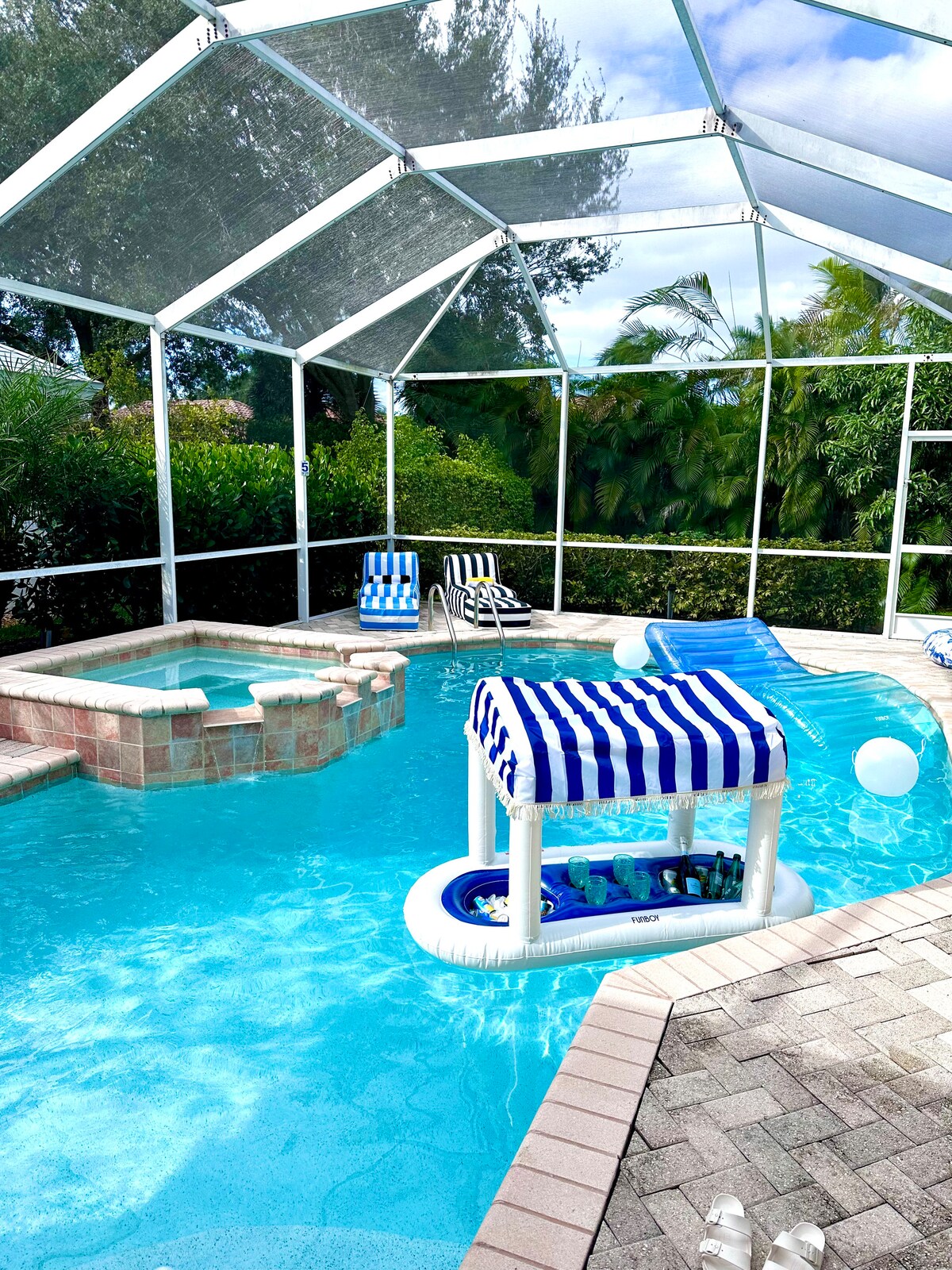 Escápate a nuestra encantadora casa unifamiliar, donde la comodidad se une al lujo en un entorno sereno. Este encantador refugio cuenta con tres espaciosos dormitorios, perfectos para familias o grupos que buscan unas vacaciones relajantes. Salga a descubrir su oasis privado: una piscina climatizada completa con una bañera de hidromasaje rejuvenecedora, ideal para relajarse después de un día de exploración, disfrute de comidas al aire libre, con amplios asientos para saborear las comidas juntos mientras se sumerge en las hermosas puestas de sol de Florida.