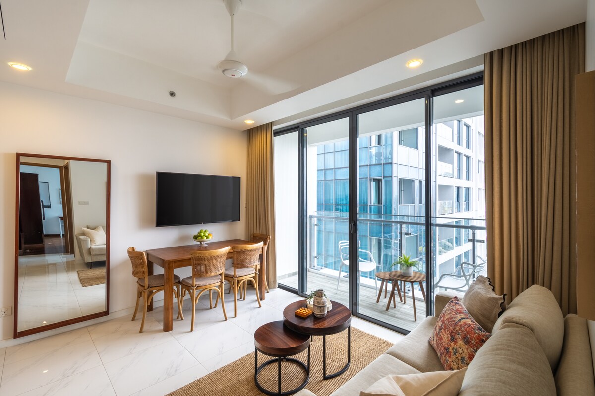 This centrally located 1-bedroom smart apartment, ideal for families, couples, and business travelers, offers a comfortable and convenient stay in Colombo. Conveniently located near shopping, dining, and key city attractions, the apartment features a fully equipped kitchen, as well as a washing machine with a built-in, high-speed Wi-Fi and smart TV. Residents also have access to premium shared amenities, including a gym, jogging track, swimming pools, cinema, car park, and a badminton court.