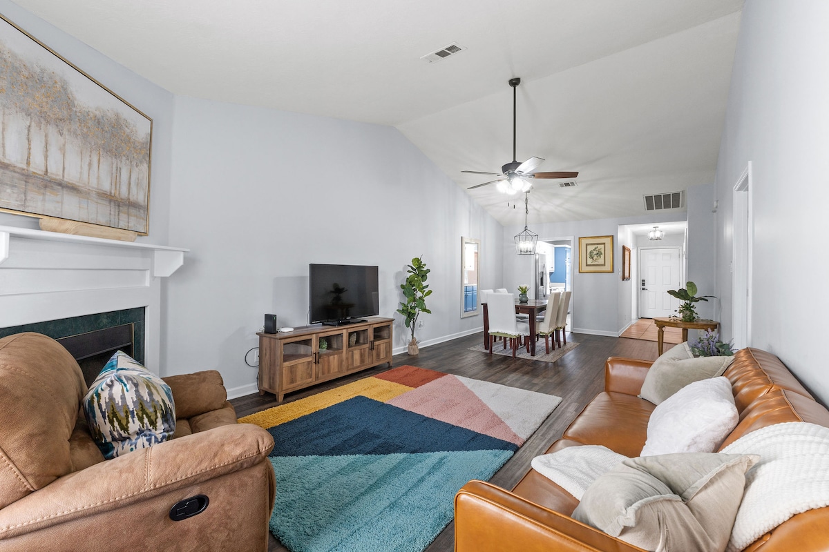 Step into the comfort of this spacious 3BR 3Bath home with outstanding facilities in a quiet neighborhood. Situated in a family-friendly area, it promises a serene retreat close to major hospitals, Augusta National, and Fort Gordon. Modern décor and a rich amenity list will satisfy your every need. 3 Comfortable Bedrooms (Queen Beds) Open Design Living Fully Equipped Kitchen Work Desk 55" Smart TVs Free Media Streaming Fenced Yard High-Speed Wi-Fi Free Driveway Parkin