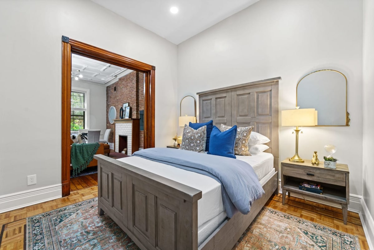 Bienvenido a nuestro hermoso apartamento ubicado en el corazón de la histórica Strivers 'Row de Harlem, con una encantadora puerta de granero, comodidades modernas y todas las comodidades del hogar. Este es uno de los barrios más atractivos, rodeado de hermosas piedras rojas, cultura vibrante y restaurantes de renombre. Ya sea que estés aquí por negocios o por placer, nuestro acogedor refugio es el lugar perfecto para llamar tuyo. Tendrás: Wifi rápido Lavadora y secadora de llegada autónoma Cocina totalmente surtida. Limpieza profesional
