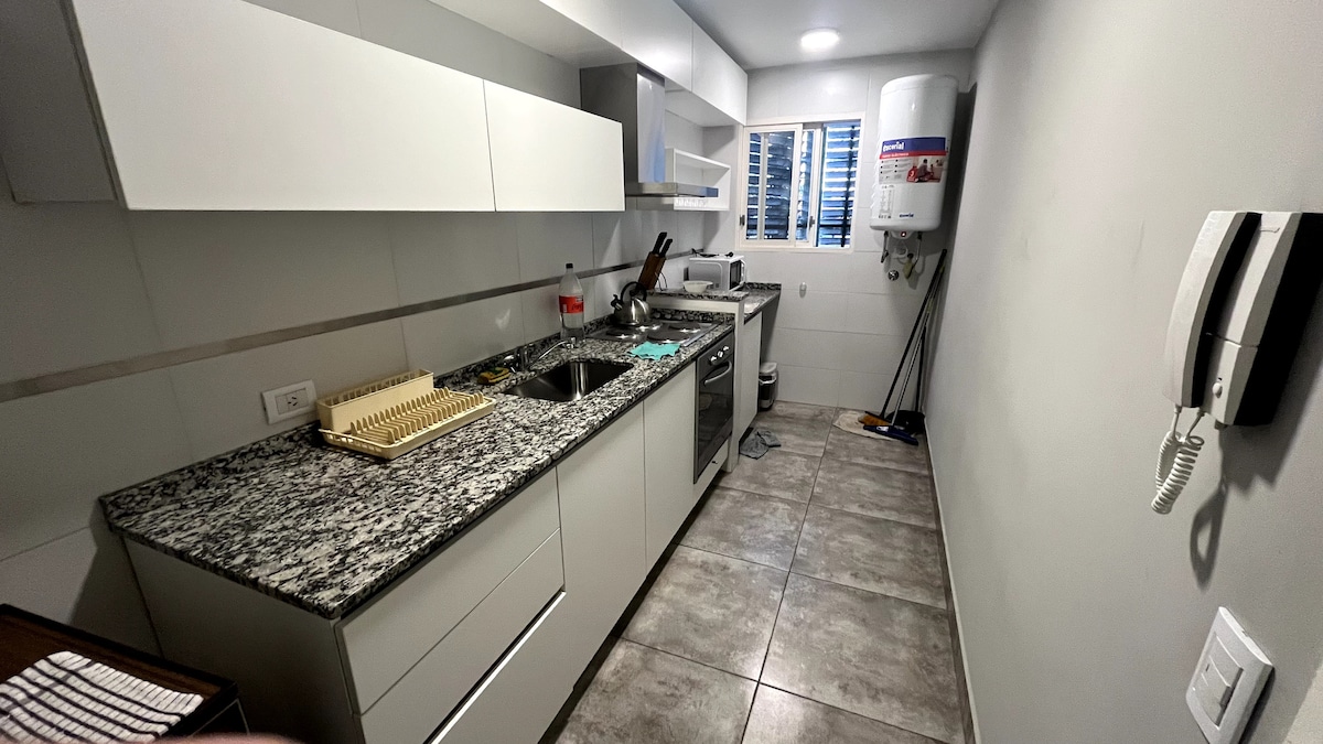 Acogedor departamento, con comodidad para 2, 3 y 4 personas, el mismo cuenta con una cama matrimonial y con un diván (sillón) que se hace cama, las sábanas son de algodón de primera calidad. El departamento cuenta con aire acondicionado frio-calor, muy buena señal de wifi, para poder estudiar o trabajar y hacer video llamadas sin problema, Tv 32", Cocina amplia, equipada con heladera, microondas, cocina/horno, para que los huéspedes puedan cocinar, pava eléctrica y vajilla de cocina.