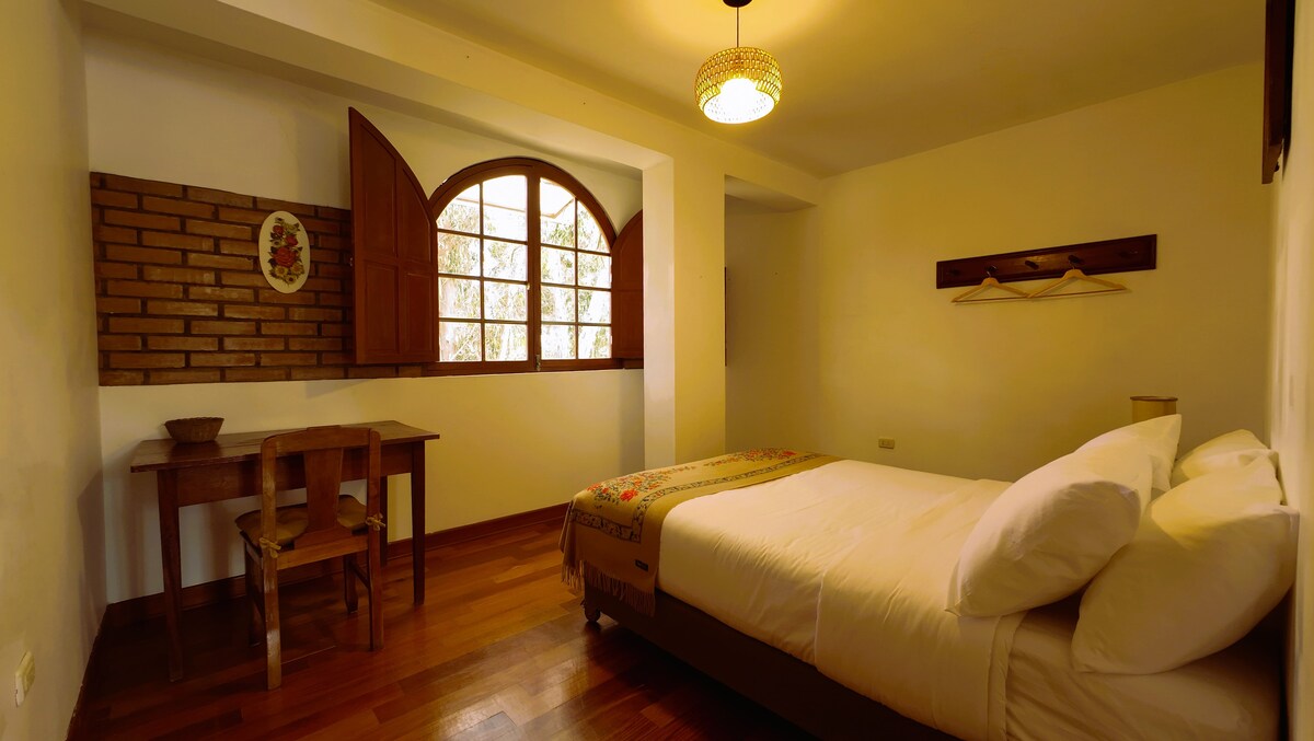 Tómate un descanso y relájate en este tranquilo y acogedor departamento, ubicado a 2 cuadras de la plaza principal, cerca de restaurantes, bancos, centros comerciales, agencias turísticas, etc. Seguro y silencioso cuenta con: TV + Netflix, cocina, frigobar, agua caliente, microondas, lavadora, etc. cochera gratuita, cómodo y seguro para usted y su familia, Cuanta con dos habitaciones, tres camas, un baño, cocina sala y todo el equipamiento necesario para una estadía placentera.