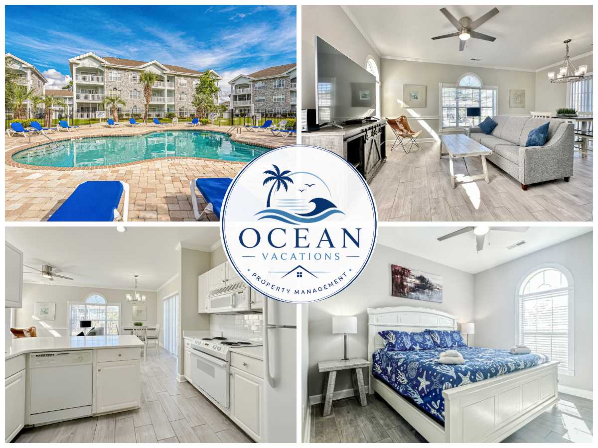 Stay in this top-floor 3BR/2BA Myrtle Beach condo with lake views, featuring a King suite and two Queen suites with walk-in showers. Enjoy a full kitchen, 55” Smart TVs, free Wi-Fi, washer/dryer, and private furnished balcony. The beach is 5 minutes away, and 4 minutes from Broadway at the Beach, shopping, dining, and top attractions. Spacious and comfortable for families, beach trips, and group getaways, this condo is the perfect home base for spring and summer vacations in Myrtle Beach.