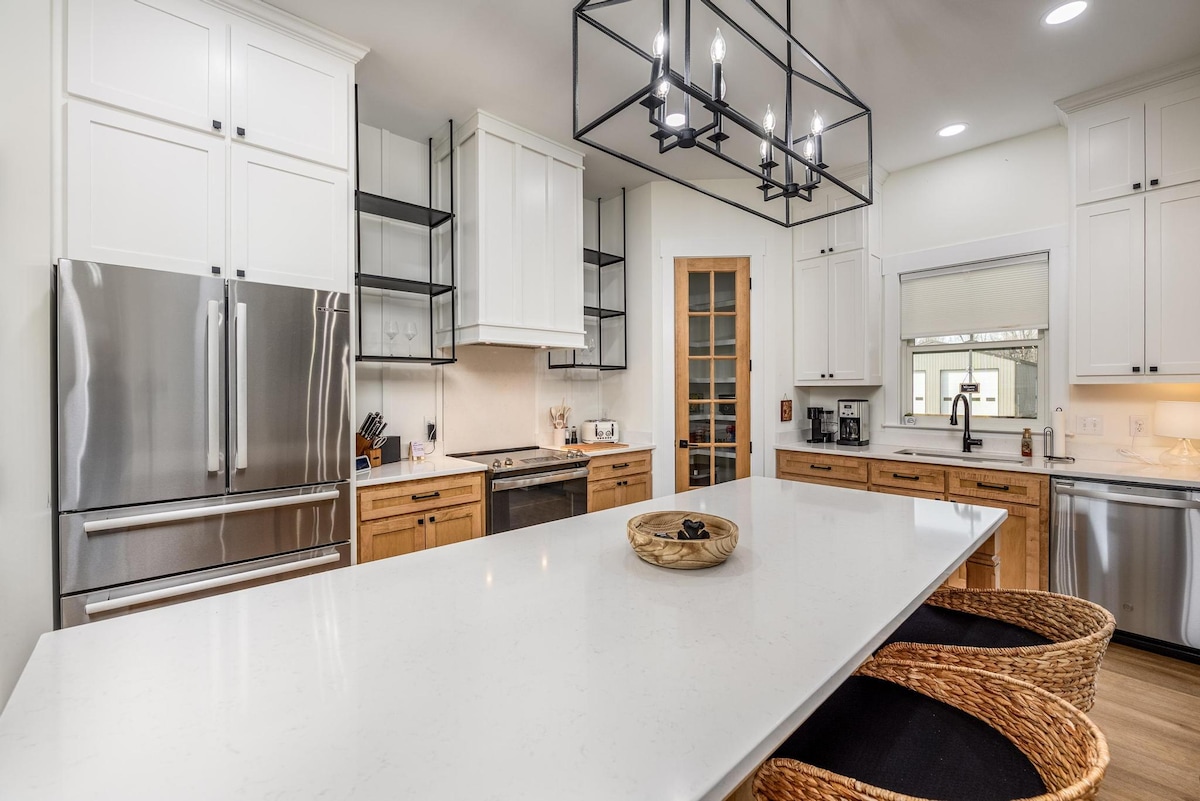 You'll love or Carriage House. Full kitchen with oven, French door refrigerator, stove, microwave. Has an island where you can eat or a dining table with 4 chairs. Washer and drier. Dedicated workspace. Large sectional sofa and coffee table. Entertainment includes 55 in Smart TV & High speed internet Queen bed & all linens. Also cotton sheets Bath has walk in frameless shower. Entire space is well lit. A place you'll visit again & again. Comfort in the country. We welcome you to our place.