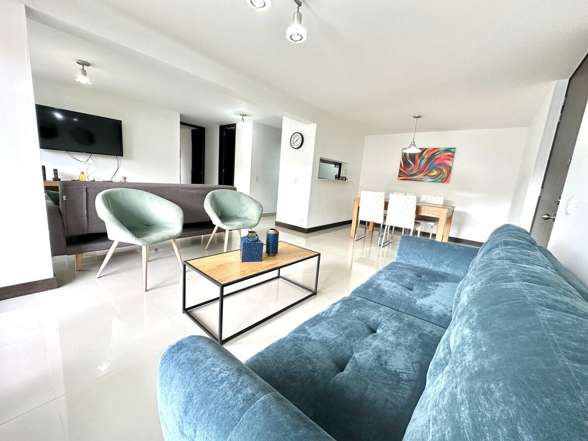 Apto moderno y completamente equipado, este apartamento está ubicado a sólo 15 minutos de El Poblado, Laureles y del centro de Medellín, en un condominio residencial en un barrio muy tranquilo y con todos los servicios (piscinas adultos y niños, sauna, gimnasio, cancha de micro fútbol, cancha de voley playa, juegos de niños, y otros), el sector tiene un excelente servicio de transporte público y cuenta con centros comerciales supermercados, hospitales, colegios, y farmacias cerca entre otros.