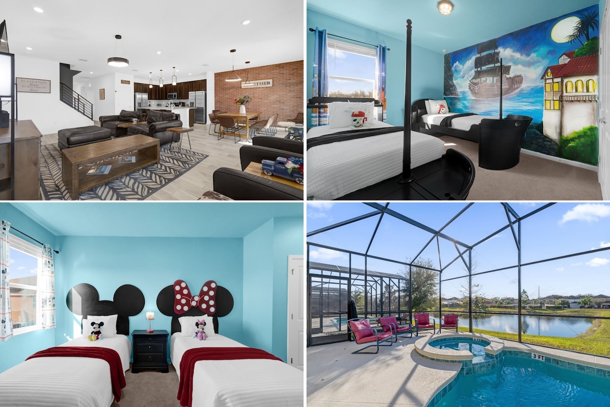 Moderna casa de 4 dormitorios junto a un lago con habitaciones temáticas cerca de Disney