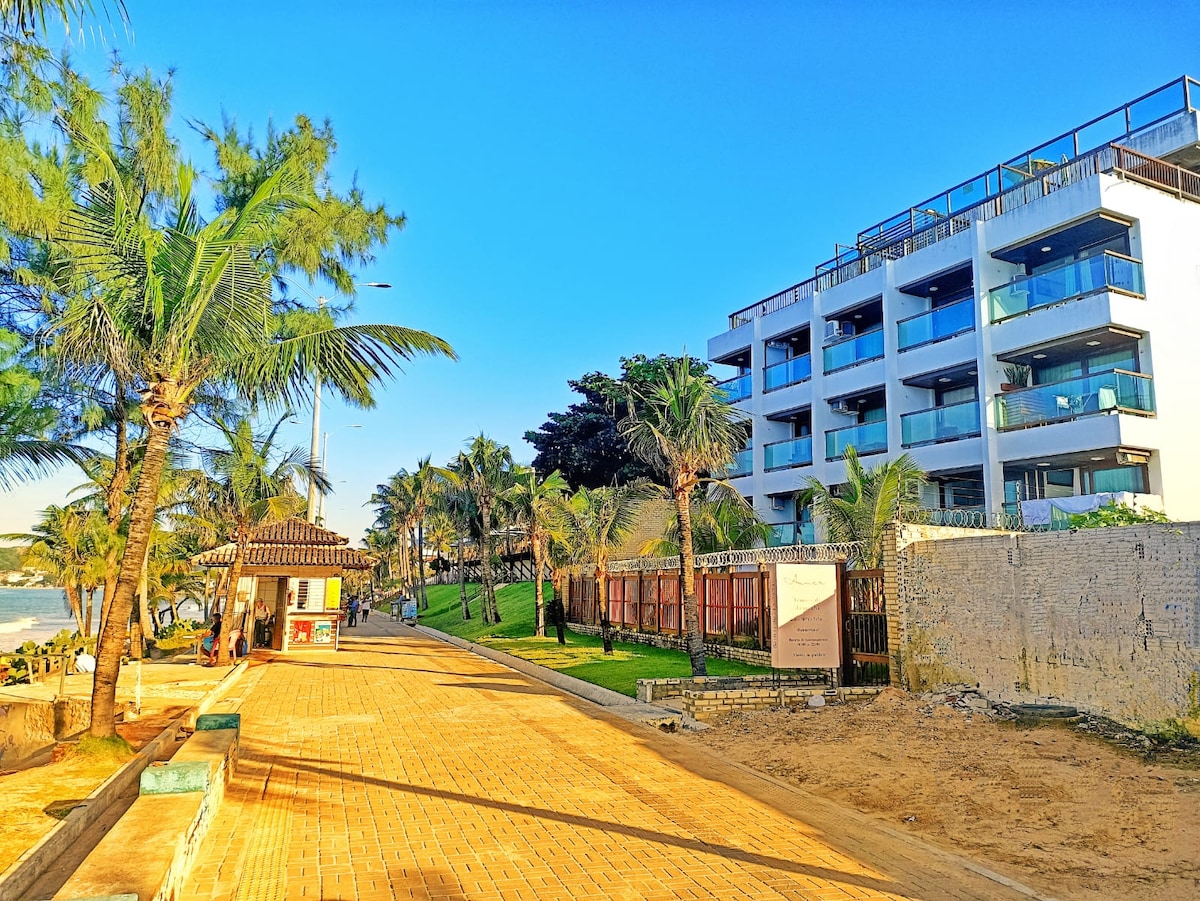 Apartamento moderno y acogedor, de 37 m2, frente a la playa, ubicado en el tercer piso del Araça flat. El Araça flat tiene una ubicación privilegiada junto al mar, en la parte tranquila de la playa. Está en primera línea, a 10 metros de la arena y de las sombrillas equipadas para tomar el sol. Desde el balcón frente a la playa, podrá descansar en la hamaca y en los cómodos sillones disfrutando de la estancia mirando al mar.