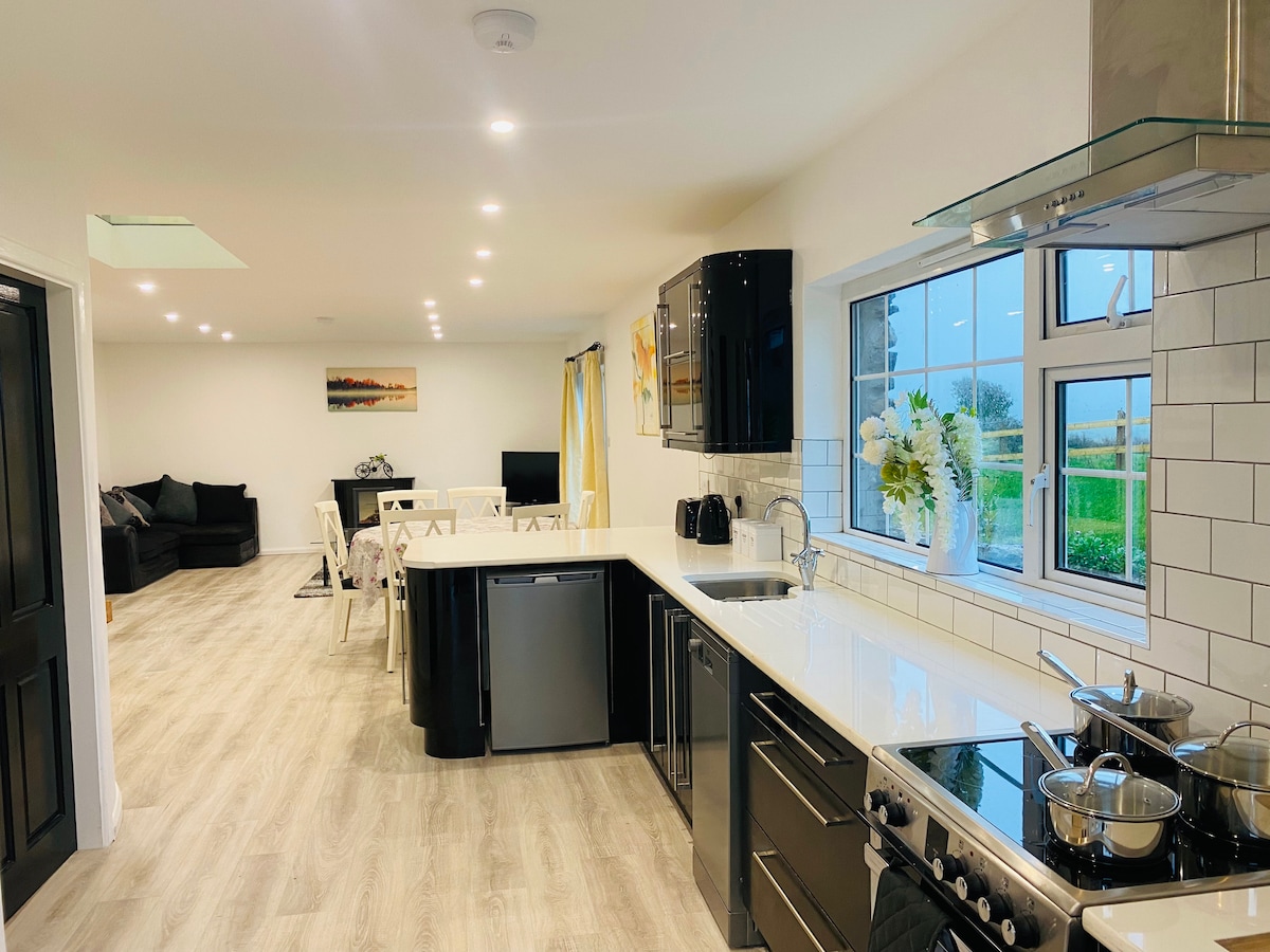 La impresionante Curragh House, originalmente una casa familiar y una granja tradicional, ha sido restaurada con cariño a una casa de campo elegante y contemporánea de dos dormitorios para que la disfrutes. Con una impresionante cocina con isla, una acogedora sala de estar y dos amplios dormitorios con baño, estarás enclavado en nuestra granja familiar de 300 años de antigüedad, donde podrás conocer a nuestras alpacas y a los caballos pura sangre ganadores de carreras. A ✔ 10 minutos de Kinsale. A ✔ 20 minutos de Cork. Escapada al✔ campo. Animales de✔ granja. ✔ 2 dormitorios con baño privado.