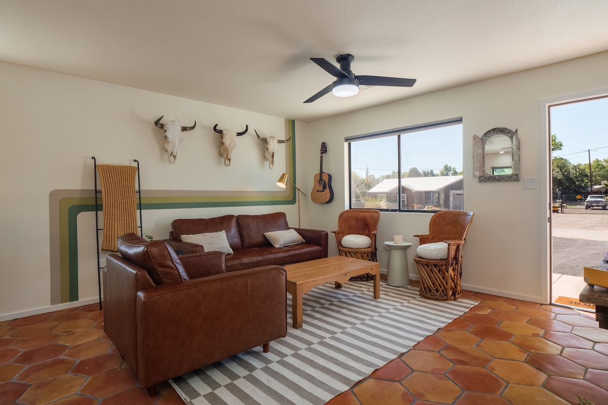 ¡Escápate a un retiro maravillosamente tranquilo! Relájate después de un día explorando las maravillas naturales de Nuevo México con impresionantes vistas de las majestuosas montañas Sandia, grullas de arena, huertos y globos aerostáticos, justo desde nuestro patio. En el interior, disfruta de un partido de futbolín. Con una ubicación céntrica, con fácil acceso a cervecerías, restaurantes, tiendas, kayak y rutas de senderismo panorámicas. ¡Ven a vivir la magia del pueblo más encantador de Nuevo México!