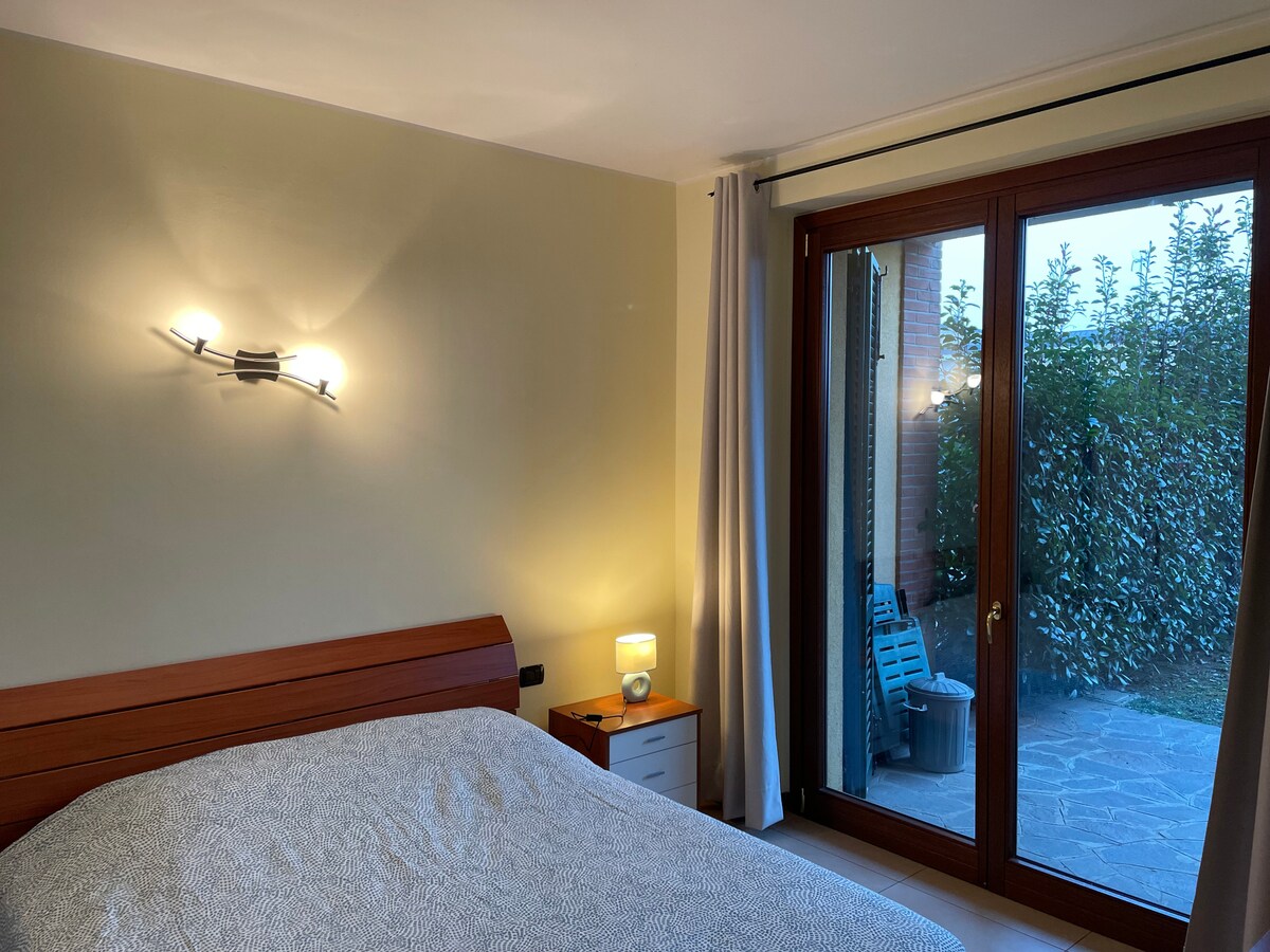 Precioso apartamento en un complejo de apartamentos tranquilo y acogedor, recientemente construido e inspirado en las casas de campo tradicionales del norte de Italia. El apartamento está en la planta baja, con un jardín encantador y espacioso que ofrece total privacidad y comodidad. Hay 1 dormitorio doble y 1 sofá. Todas las comodidades incluyen cocina moderna, platos y utensilios de cocina, lavavajillas, baño con ducha y lavadora, tendedero y plancha.
