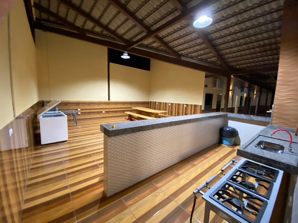 ¡Nuestra encantadora casa de vacaciones ubicada a solo 150 metros del impresionante lago Corumbá! Con acceso directo al lago para pescar y practicar deportes acuáticos. Perfecto para grupos grandes y familias, nuestra casa tiene capacidad para 15 personas cómodamente, ofreciendo todo lo necesario para una estancia inolvidable. * Quiosco de barbacoa * *Piscina climatizada * * Mesa de billar * * Cocina completa * * Sala de televisión * *3 dormitorios* * Vista privilegiada y tranquilidad*