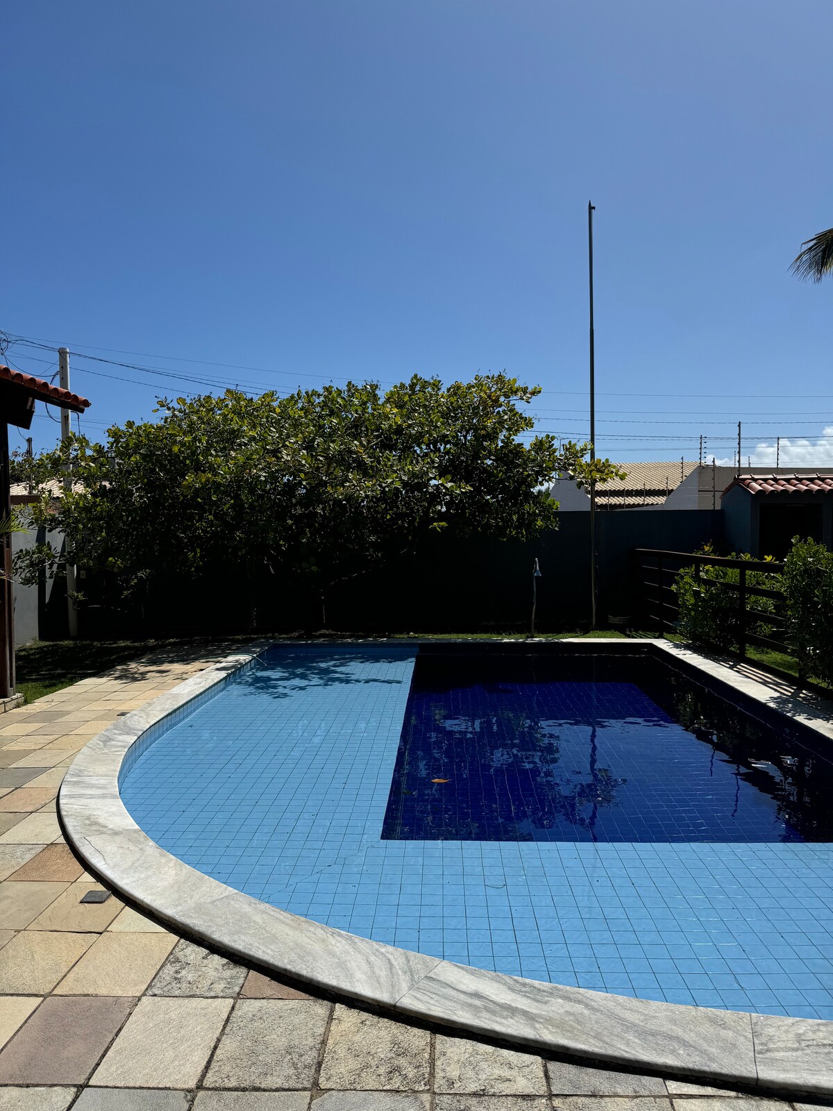 Frente al mar, la casa tiene capacidad para 9 personas y tiene una excelente zona al aire libre, con barbacoa, ducha y garaje. Sala con TV, sofá y mesa de comedor, cocina equipada y área de servicio. 03 habitaciones (2 suites con balcón). Todas las habitaciones tienen aire acondicionado. 3 habitaciones recién renovadas y 1 medio baño. La casa está en un condominio seguro, con portero y un excelente área de recreación con piscina. Está cerca de un mercado y en la calle del condominio hay una deliciosa pizzería.