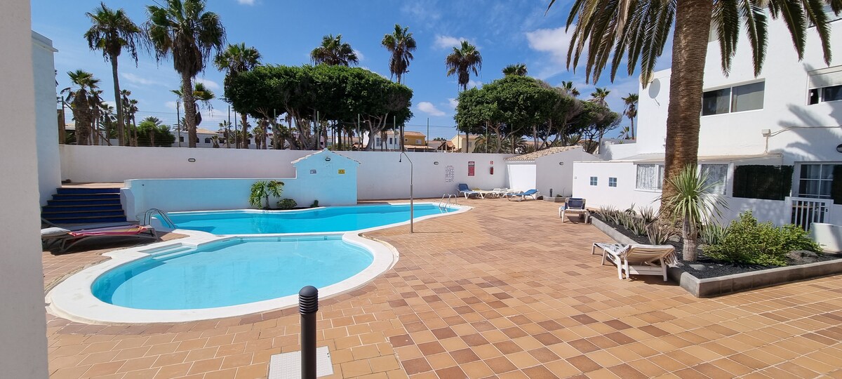 Con la familia o sola, disfruta de este alojamiento con estilo.Este amplio apartamento está situado en un complejo residencial,a solo 12 min del centro de Corralejo.Una ubicacion previlegiada,con caffes y restaurantes alrededor.Dispone de una gran terraza perfecta para desayunar al aire libre o pasar un romántico atardecer con una copa de vino.Dos grandes supermercados en el barrio (1,1km). Para su seguridad el apartamento tiene alarma instalada.Disponibles cafe,azucar,aceite de oliva,especies..