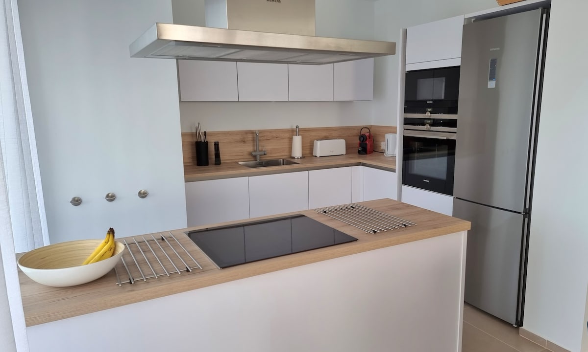 Este alojamiento único tiene un estilo propio. Este fantástico apartamento está situado en un complejo de nueva construcción. Este complejo es conocido por sus jardines subtropicales, piscinas climatizadas y gimnasio, que puede utilizar. Consta de un amplio salón con grandes ventanales que dan a la amplia terraza, desde donde se pueden ver los hermosos jardines y la piscina. La cocina está totalmente equipada