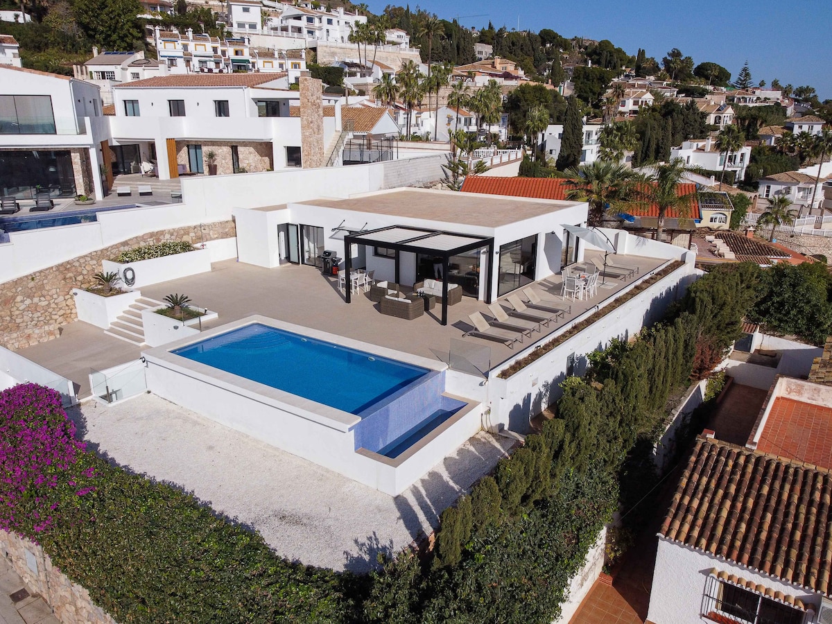Moderna villa con vistas panorámicas.