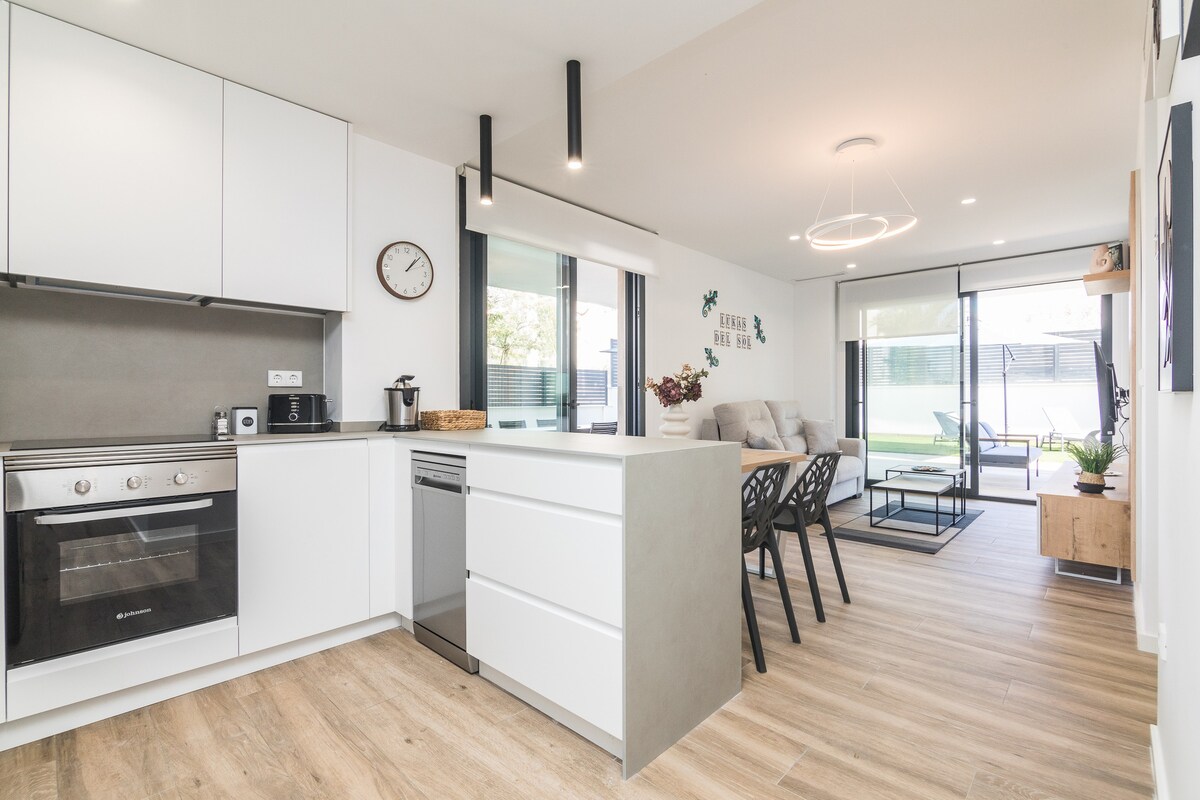 Este apartamento turístico en Gran Alacant es ideal para parejas que buscan una escapada romántica o un lugar tranquilo para teletrabajar. Con 45 m² de espacio diáfano y reformado con estilo moderno, ofrece una cocina completa, aire acondicionado, y un jardín perfecto para cenas o desayunos bajo el sol mediterráneo. La playa de Carabassi está a 900 metros. Cuenta con smart TV, internet de alta velocidad y una acogedora iluminación .