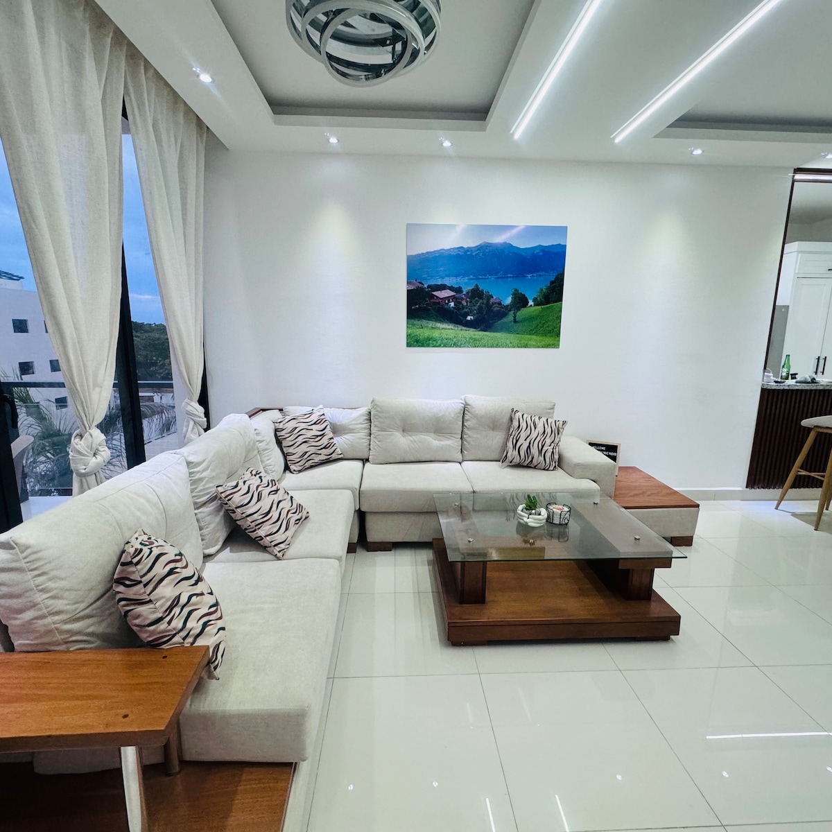 Hermoso y moderno apartamento en el centro de Puerto Plata. Comodo para 6 personas. Decorado con estilo, cerca del Malecon, playas, Supermercados y Restaurantes. Habitaciones con aire acondicionado y abanicos. Una vista hermosa a las montanas desde el balcon. Wi-Fi rapido, lavadora, secadora y parqueo. A solo 20 minutos del aereopuerto POP.