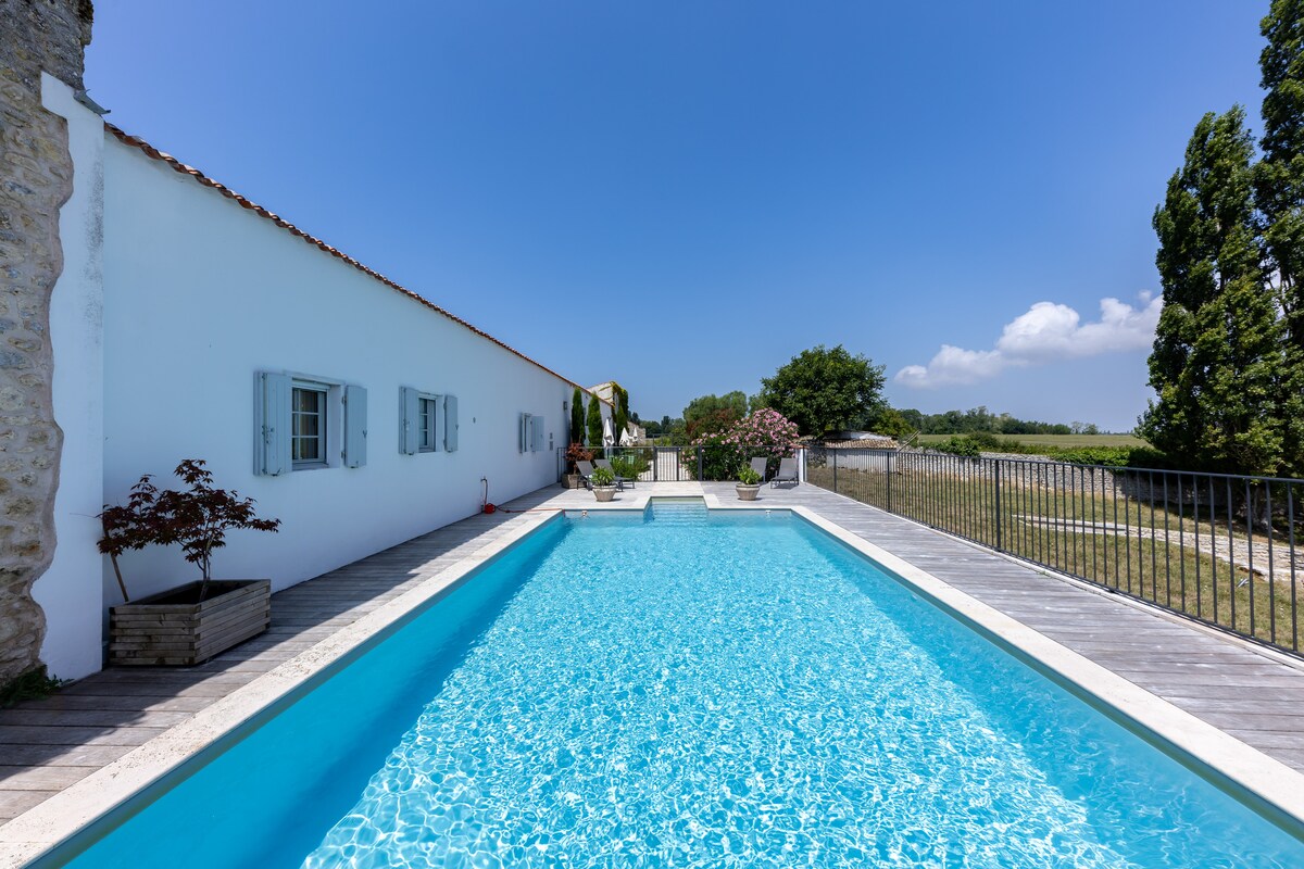 En el corazón del triángulo Royan-Saintes-Rochefort, descubrí un refugio rural tranquilo a solo 25 km de las playas. Esta espaciosa casa rural de 110 m² se encuentra en una finca vinícola del siglo XIX de 2 hectáreas. Disfrutá de tu terraza privada y jardín cerrado. Desde mediados de abril hasta principios de octubre, date un chapuzón en la pileta de agua salada climatizada a 27 °C, que vas a compartir con solo otros dos huéspedes. Un verdadero paraíso para los amantes de la naturaleza y la tranquilidad.