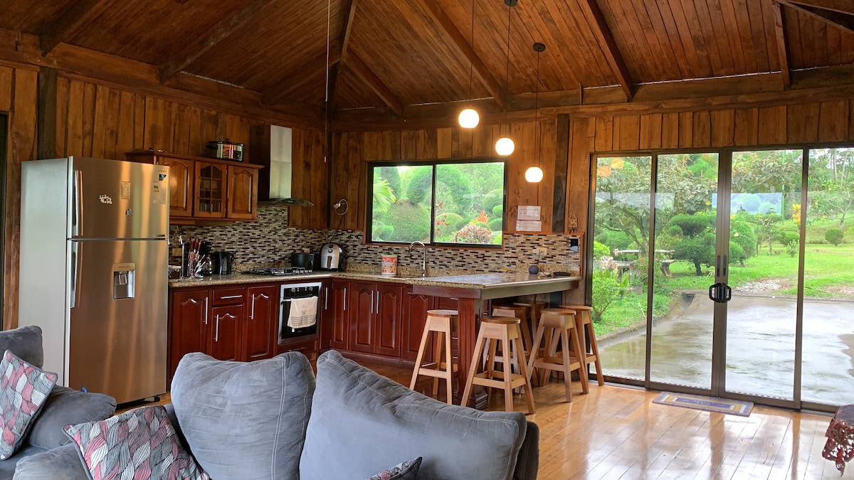 Tu familia estará cerca de todo cuando te quedes en este alojamiento céntrico. A la vez estas en un lugar lleno de naturaleza, privado con todas las comodidades. Ven con tu familia, grupo amigos y mascotas. Te ofrecemos una casa completame equipada con lo necesario para tu familia. De este lugar puedes llegar en 1 hora a Paso Canoas. En 30 minutos a la Union o Sereno. Y a Golfito en 1:40 m. Espacio perfecto para los que trabajan por medio de Teletrabajo. El Clima es Fresco. Te esperamos