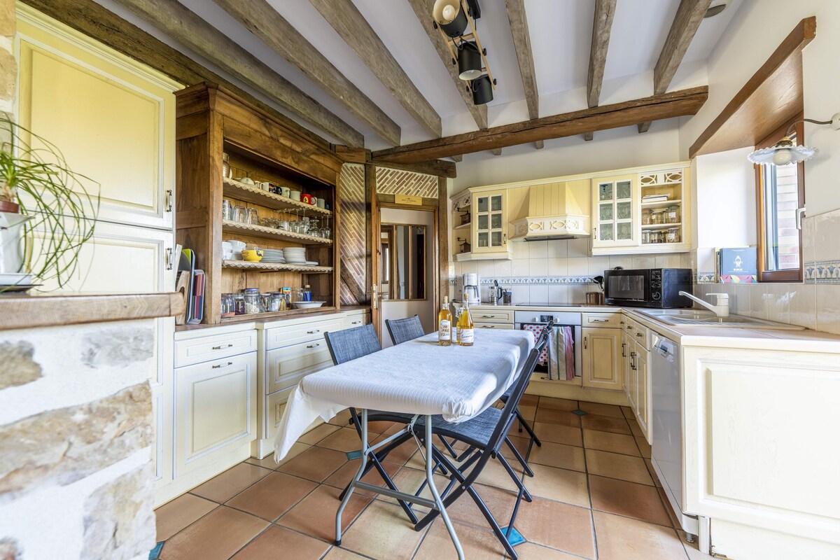 Maison de campagne avec divers jeux pour la famille ou entre amis. A disposition: - Table de ping pong - Foot golf - Snookfoot - Pétanque - Volley - Jeu de piste - Badminton - Jenga géant - But de foot - Panier de basket - Cornhole - Palet - Molky - Croquet - Jeux de société Proche de l'autoroute A11 et d'une ZAC (restaurants, centre commercial etc). Barbecue et espace extérieur privatif. Plan d'eau à proximité, les enfants sont sous votre responsabilité. Draps et serviettes inclus.