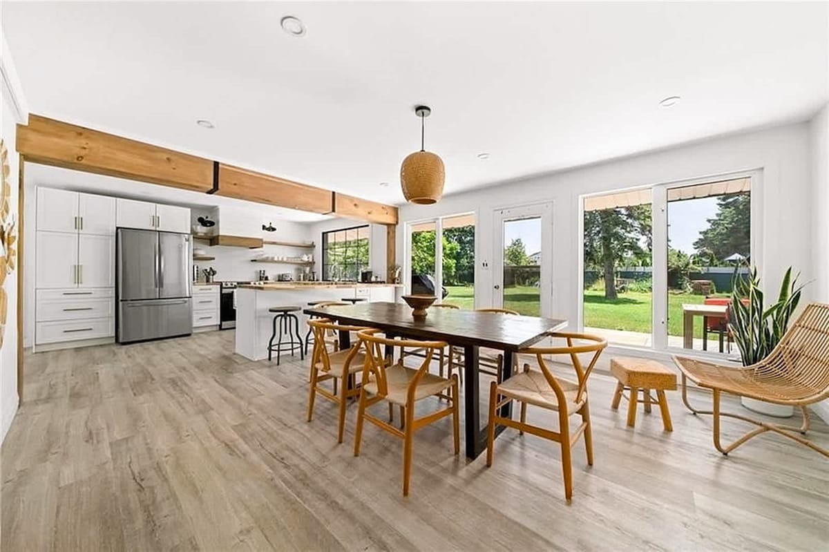 Recientemente renovado a orillas del lago Ontario, Parkway Lake House es el refugio moderno perfectamente aislado para alejarse de la vida cotidiana y sentirse como en casa. Reúnete con amigos y familiares y disfruta de un lujo relajado. La casa Parkway Lake House fue diseñada por Tiffany Leigh Design y apareció en The Globe and Mail, Country Home y Haven List. Fotografía: Patrick Biller y Christine Reid