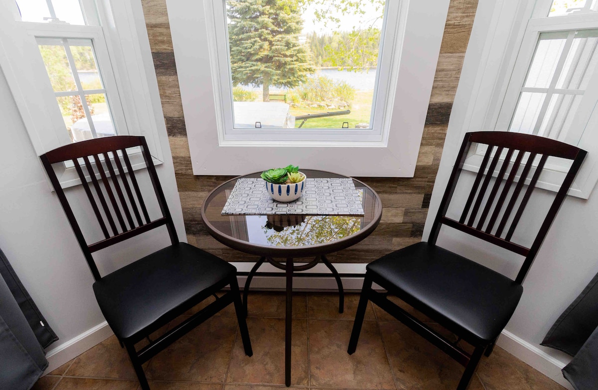 This bright and spacious newly finished private suite is located on Newfoundland's Great Northern Peninsula nestled in the scenic Gros Morne National Park community of Cow Head. This ideally located suite contains a kitchenette, bedroom, cozy living space, a three piece bath and is located just minutes from Shallow Bay beach, Gros Morne Theatre and Western Brook Boat tours. Please note that there are 5 suites in this building, with a shared wrap around porch and fire pit.