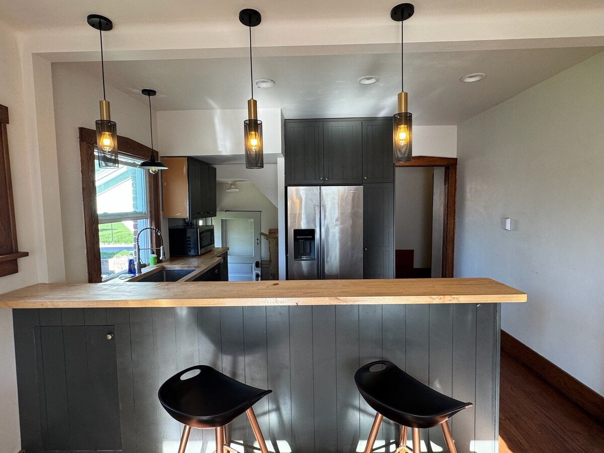 Casa antigua de 1880 completamente renovada en un pequeño pueblo pintoresco en Weston, Iowa. Entorno rural con vistas a campos agrícolas, colinas onduladas, el ambiente de un tren que se mueve lentamente una vez al día o por la noche. Un corto sendero pavimentado para caminar/montar en bicicleta, que pronto se conectará con otro sendero. Hay una carretera del condado enfrente que tendrá tráfico. Puedes despertarte con una hermosa vista y disfrutar de tu café en la terraza o dar un paseo por nuestro terreno trasero y escuchar la naturaleza. Estamos al otro lado del río de Omaha, Nebraska.