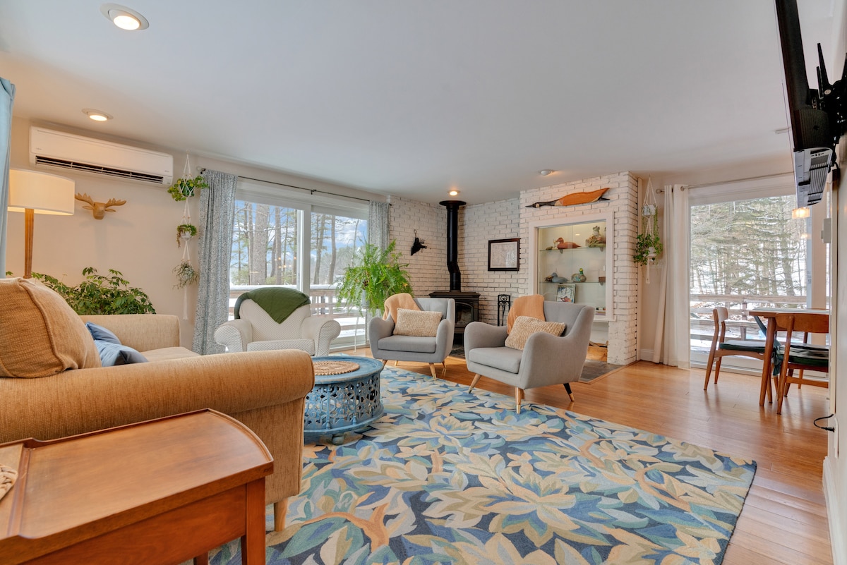 Escápate con toda tu familia en esta tranquila casa en el campo. Escuchá el croar de las ranas en el estanque, el canto de los pájaros en las copas de los árboles y observá a las gallinas deambular. Disfruta de las noches despejadas y estrelladas mientras te relajas en el jacuzzi o acurrucándote junto al fuego. Ubicación céntrica entre la costa y las montañas. Dirígete a una hora al norte para tomar el senderismo familiar o en las pistas para disfrutar de las montañas. Dirígete 40 minutos hacia el sur para contemplar la costa y ver el emblemático faro de Maine.