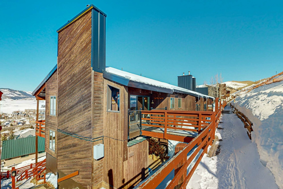 Esta unidad espaciosa y serena es uno de los edificios más bonitos de Mt Crested Butte. Te encantará nuestro apartamento por sus espectaculares vistas y su fácil acceso a las pistas. Ofrecemos un garaje, un guardaesquís y un jacuzzi. En nuestra casa encontrarás todo lo necesario para disfrutar de tu estancia aquí y ¡la mejor vista de la ciudad! Estamos a solo 3 minutos a pie de la zona base, a 2 minutos a pie de la estación de autobuses de Mountaineer Sq y a 10 minutos en autobús de Elk Ave.