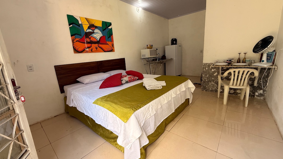 Studio moderno e confortável no centro de Cristalina, a poucos passos de restaurantes, farmácias, lanchonetes, lojas e outros comércios. O espaço é compacto, bem planejado e equipado com cozinha funcional, Wi-Fi rápido e cama aconchegante. Ideal para casais ou viajantes a trabalho que buscam praticidade, conforto, segurança e excelente localização para aproveitar tudo que a cidade oferece.