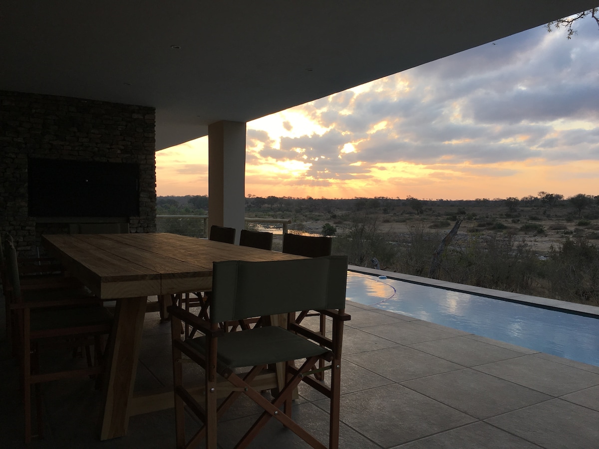Ivory House es una pequeña casa de safari contemporánea diseñada para parejas que recorren el Parque Nacional Kruger, en luna de miel o simplemente para celebrar el amor. La casa es una hermosa configuración de planta abierta con una puerta corrediza de siete metros. La casa tiene un diseño de interiores con artículos de toda África. La casa está a solo doscientos metros de la valla del Parque Kruger y se pueden ver elefantes a poca distancia a pie del río o desde nuestra torre de observación.