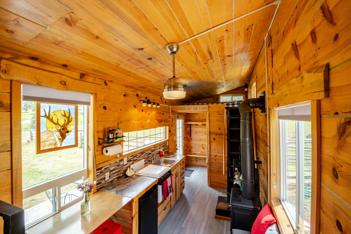 Cozy, country tiny home with deck, fire pit, views of meadows, and Ochoco National Forest. Interact with the horses, cattle, and dogs. Serene space with beautiful views of the Cascade mountains. Dark sky certified. View the Milky Way, many constellations, and a few galaxies. Located on 2100 acre Ranch, which is 11 miles from Prineville and 1 mile from the National Forest. Many outdoor activities are available - hiking, mountain biking, snowshoeing, birding, and much more.