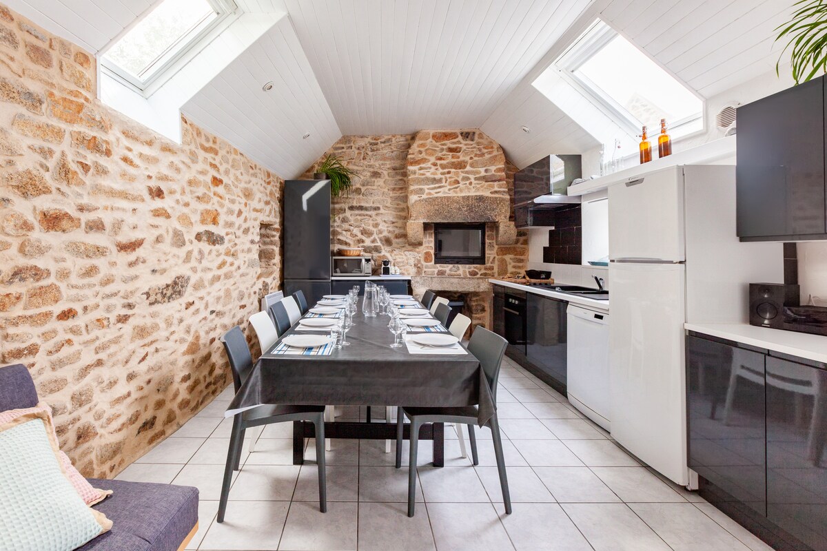 Más que una estancia, ¡una experiencia! ¡En Morgat TODO es mágico! El lugar, la gente... y la casa, por supuesto. Situada a 300 metros del GR34 a 15 minutos a pie de los muelles y el puerto. Piscina de 7x3, climatizada de abril-mayo a septiembre/octubre. Baño turco 12 camas -3 habitaciones con cama doble, separables en 2x 80x200 -1 dormitorio de 6 camas 90 x 200, incluyendo 1 litera. Casa ideal para los amantes de la naturaleza que deseen reponer energías en familia o con amigos FIESTAS PROHIBIDAS 12 PERSONAS MÁXIMO Gracias