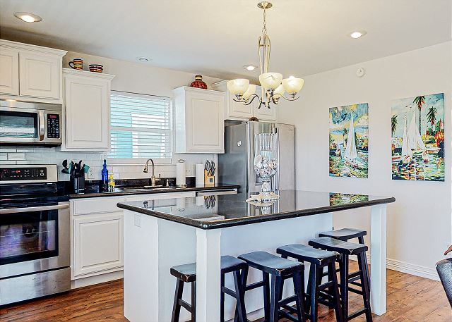 BEACHSIDE BLISS is a luxurious and stunning cottage located just a few steps from the beach, offering breathtaking panoramic views of the ocean. This luxury home is great for family gatherings, where you can enjoy the fresh ocean breeze and the soothing sound of waves. The balcony provides spectacular sunrise and sunset views and is ideal for viewing Galveston lights at night. Come spend some time here @ BEACHSIDE BLISS!
