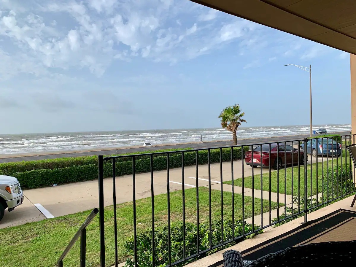 Apartamento frente al mar con vistas impresionantes Disfruta de tu estancia en nuestro espacioso condominio de 2 dormitorios y 2 baños en Galveston. Disfruta de las vistas al mar desde el balcón, la sala de estar y el dormitorio principal mientras disfrutas de las comodidades. Hay una piscina, un jacuzzi, cancha de tenis/cancha de pickleball y área de barbacoa. 🌟Capacidad para 6 personas. 🌟Cama tamaño king cama 🌟tamaño queen 🌟sofá cama 🌟colchón inflable 🌟Cocina totalmente equipada. 🌟Balcón privado amueblado Equipo de 🌟playa incluido: toallas, vagón, sillas, sombrilla, nevera