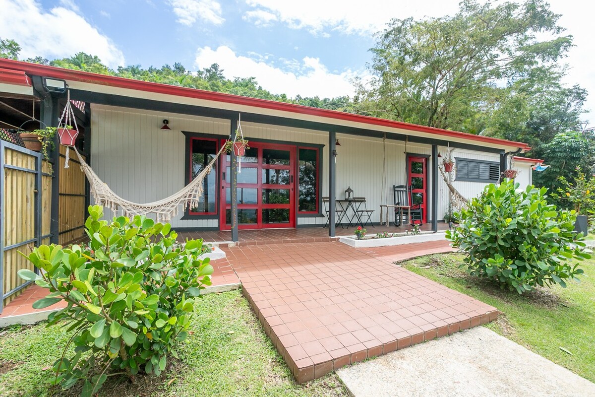 Withdraw from the city in this perfect retreat! Get away from the city and enjoy a serene interaction with nature at peaceful stay located near El Yunque rainforest. This property is up mountain far away from the city, close to National forest trails, rivers and waterfalls. Cottage surrounded with tropical flowers and fruit trees on top of a mountain; ocean view on a clear day. Located, up mountain, 50min away from the airport SJU. IMPORTANT: There will be 15min of the route with winding roads.