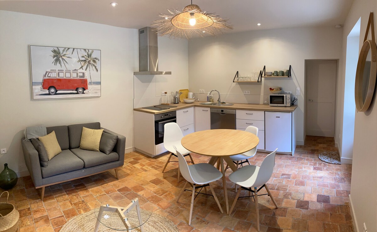 ✨Bienvenue chez July✨ Installez-vous dans une maison de charme datant de 1850, un véritable havre de paix où l'authenticité est reine. Ce bien est le fruit d'une rénovation menée avec une attention particulière aux détails, préservant l'âme et le caractère d'origine. Nous avons choisi des matériaux naturels -bois, pierre, lin, chaux- des éléments auxquels nous sommes sensibles, pour créer une atmosphère chaleureuse, douce et profondément relaxante.