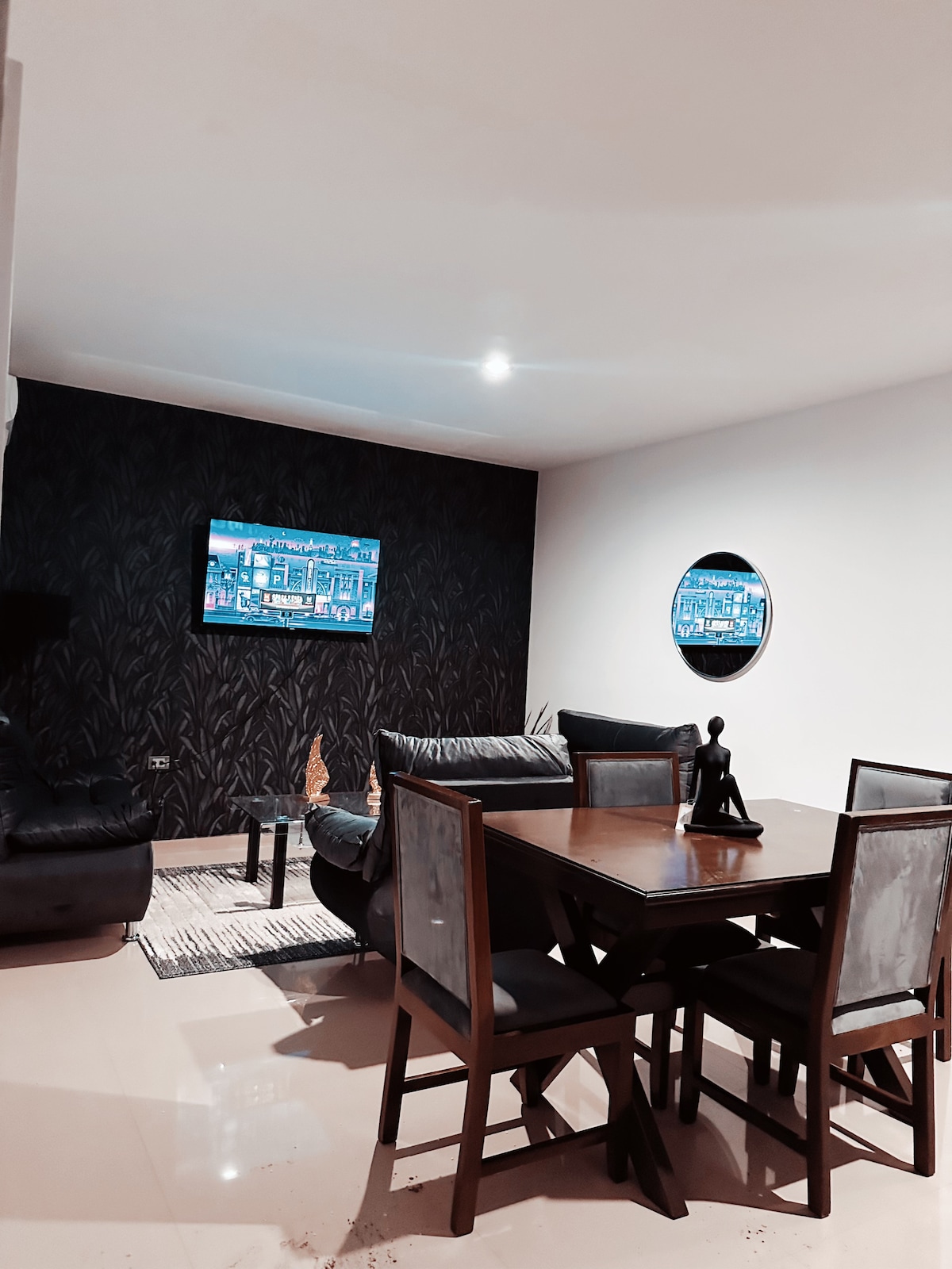 Adéntrate a este departamento de 110m2 con Vista a las montañas. Con toques playeros , modernos y vanguardistas , te sentirás tan cómodo que no querras salir de aquí. Podrás disfrutar de una estancia agradable viendo Películas HD en cualquiera de nuestros 2 televisores Con Netflix , HBO, Disney , Prime y Star+, mientras cocinas una rica cena en nuestra cocina de Cuarzo estelar. Internet de alta velocidad Piscina compartida en el primer piso y en el roof garden un gym