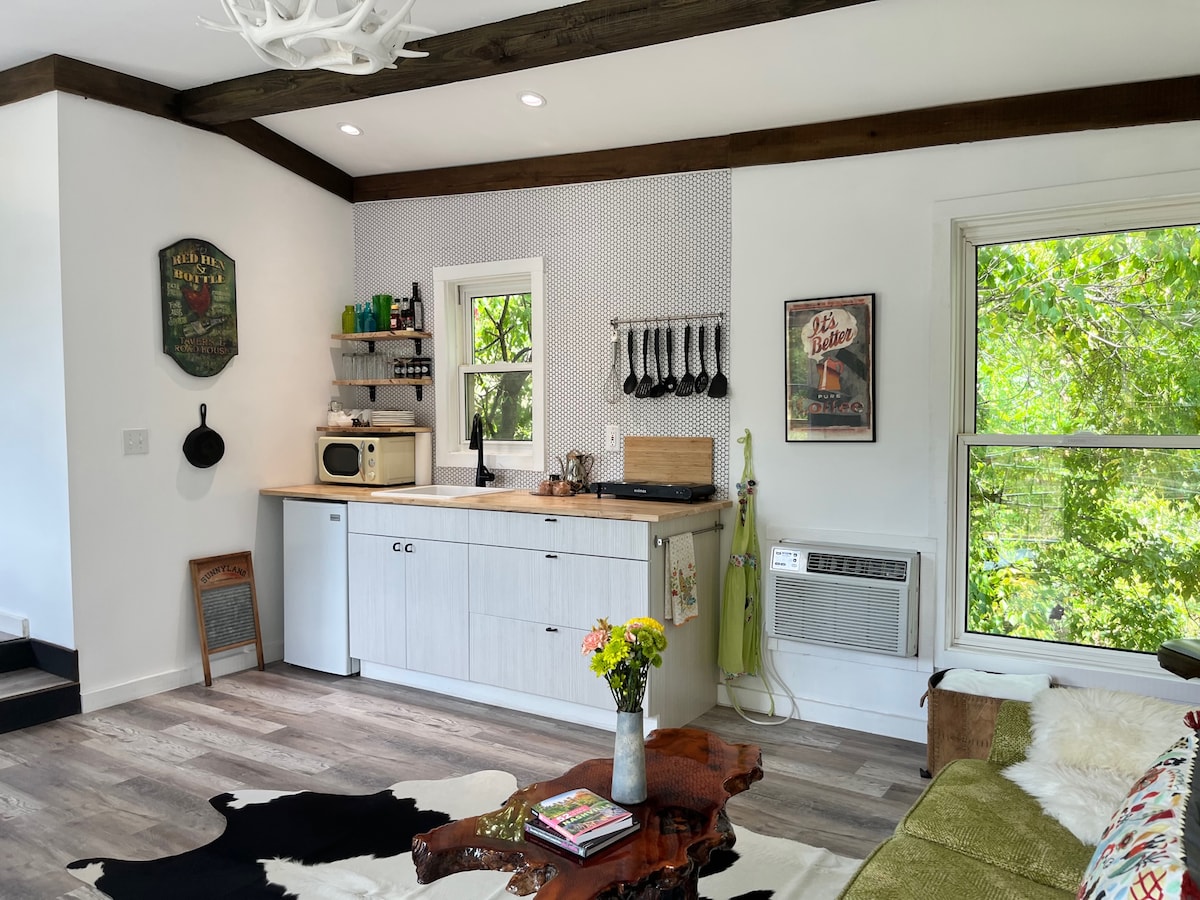 ¡Caza, senderismo y más! Un refugio tranquilo con todas las comodidades del hogar. Colores relajantes, mucha luz natural. Disfrutá de la belleza natural de Tennessee con un sutil homenaje a nuestras playas favoritas de la costa del Golfo. “The Little House by the Woods” está en una cresta rodeada de árboles. Al otro lado de la carretera se encuentra el Área de Manejo de Vida Silvestre de Cheatham con 20.000 acres de colinas con senderismo, caza y observación de aves. Tendrás fácil acceso a muchos parques, lugares de recreación y todo lo que Nashville (a 30 minutos) tiene para ofrecer.