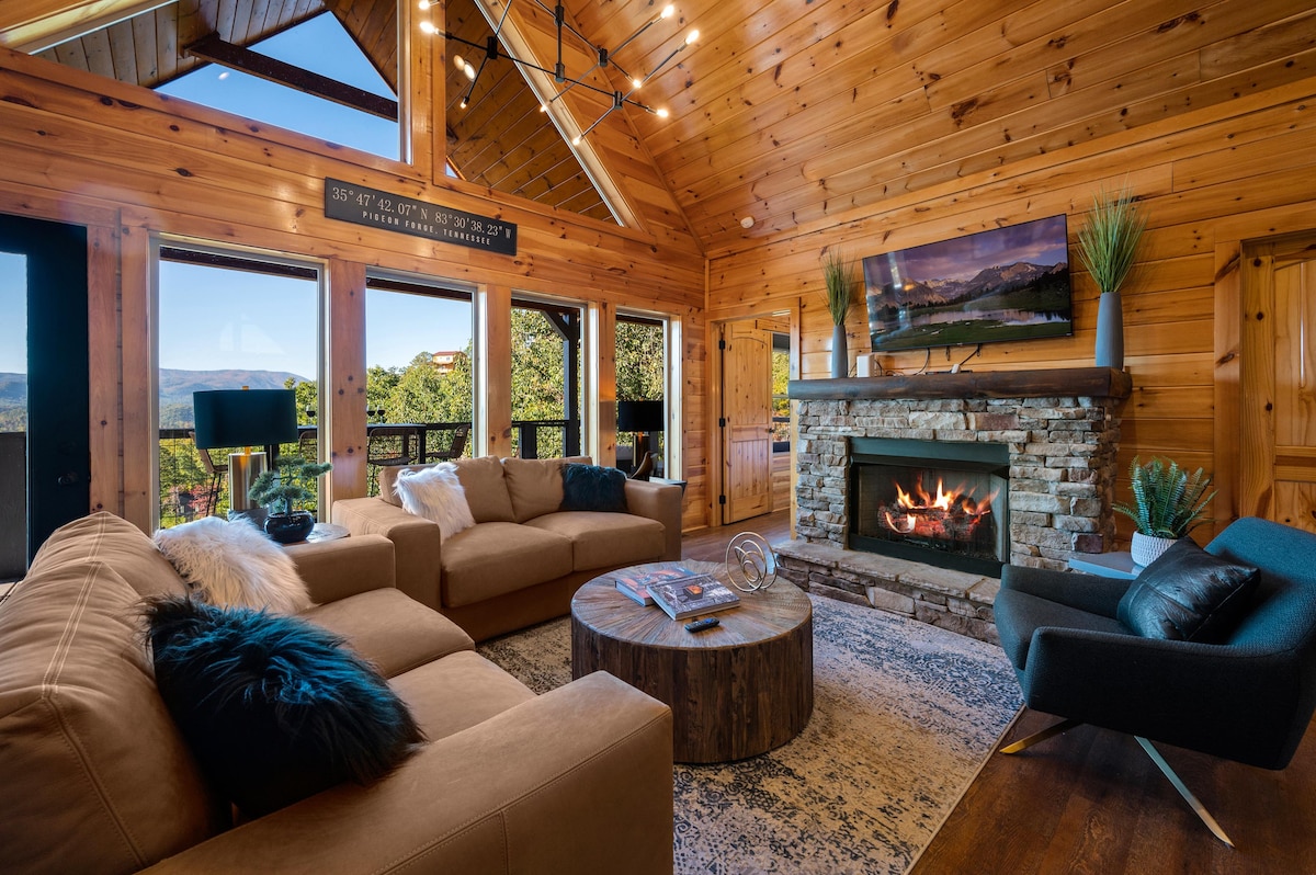 🛁 Relájate en el jacuzzi para 7 personas con luces LED o disfruta de noches de cine en la sala de 🍿 cine con una acogedora chimenea lineal. Reúnete alrededor de la chimenea de propano de 🔥 5 pies (capacidad para 10 personas) o relájate en porches de ☀️ doble cubierta con vistas ⛰️ panorámicas a la montaña. La sala de 🎱 juegos cuenta con una sala de juegos de 60 juegos, mesa de billar, hockey de aire y más. ¡🛏️3 suites king + literas para niños, cocina 🍳 totalmente equipada, chimenea de 🔥 gas y 🎲 una gran selección de juegos de mesa te esperan!