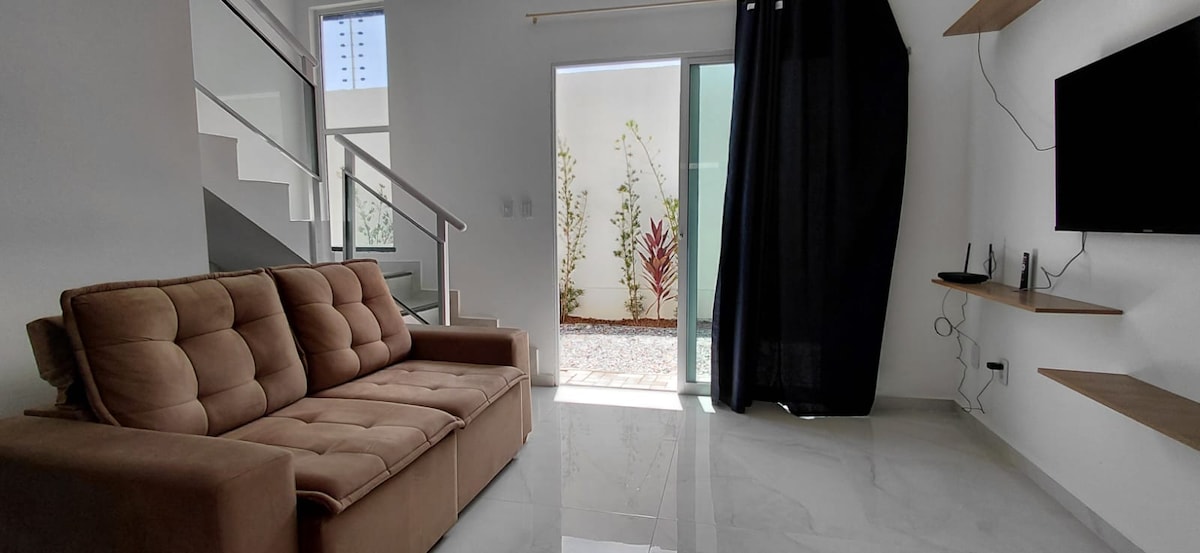 Relajate con toda la familia en este alojamiento tranquilo, con habitaciones con aire acondicionado, wifi y TV con acceso a Globoplay. Casa junto a los puestos de Ronco do Mar y Oficina 23. Cerca de supermercados, farmacia, pizzería , puestos con actividades de kitesurf. Condominio totalmente seguro, con una valla eléctrica y cámaras de monitoreo.