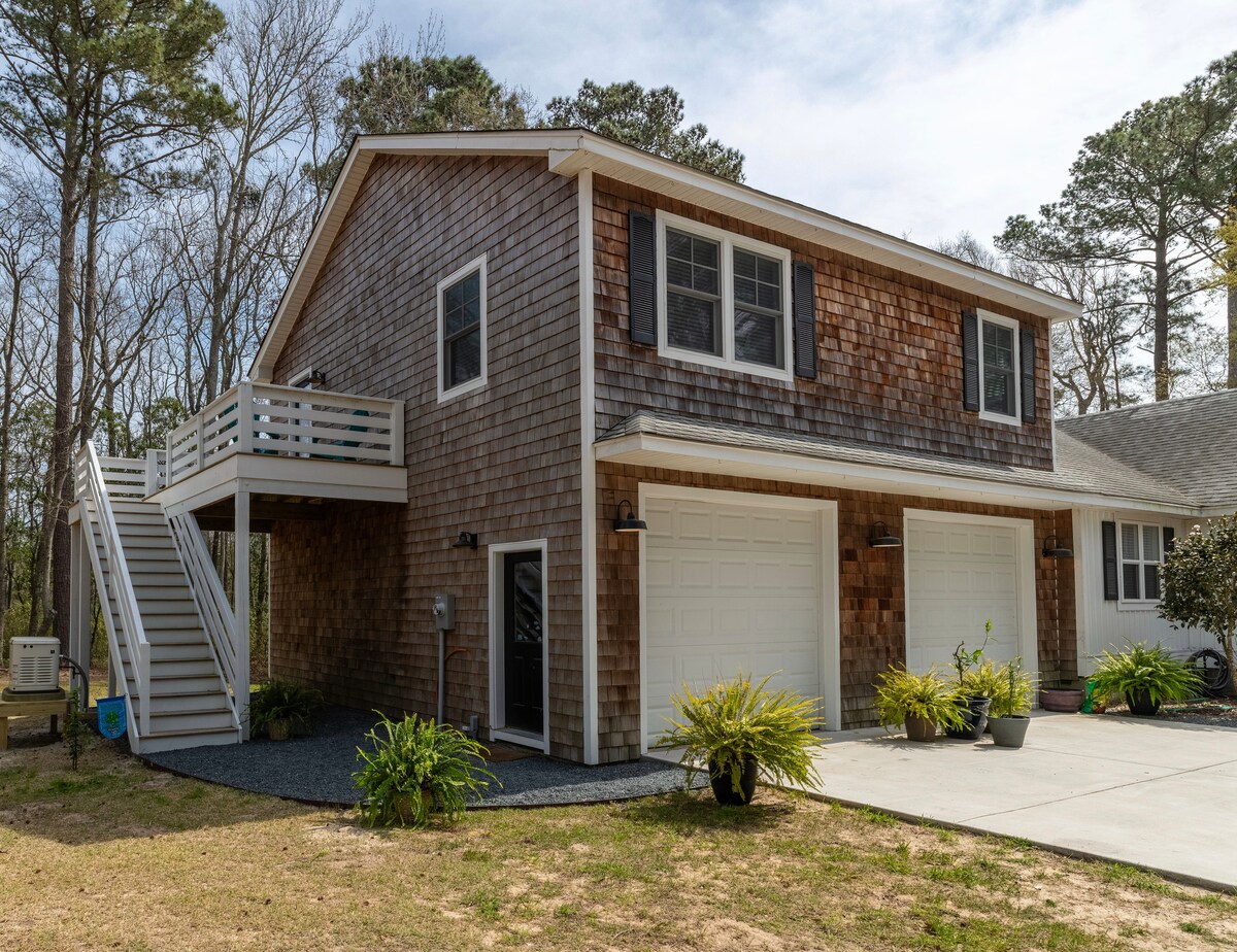 Summerset Place - Southern Shores se encuentra en el hermoso bosque marítimo. Hemos convertido nuestra suite de invitados en una escapada relajante con el uso de toda la zona de la terraza con un cenador sombreado para relajarse mientras se escuchan los pájaros. Disfrutarás de una acogedora suite de 4 habitaciones que está separada de la casa principal, con todas las comodidades del hogar. También habrá 2 bicicletas y 2 sillas de playa para tu uso. La playa está a poco más de 1 milla de distancia. Vivimos en la casa principal con nuestro perro rescatado Shep.