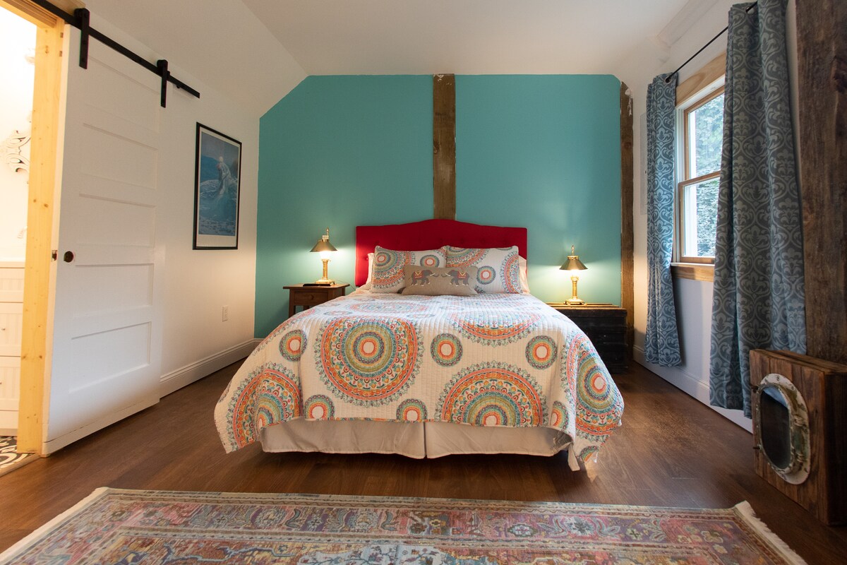 The Duck Inn is a 320 sq ft efficiency apartment adjacent to the Lunker Lodge. It has a private entrance, full bathroom, ample closet space and is furnished with a queen sized bed (new Nectar mattress), and a loveseat with full sized pullout. Kitchen area is equipped with a microwave, toaster oven, hot plate and Keurig coffee maker and basic kitchenware.