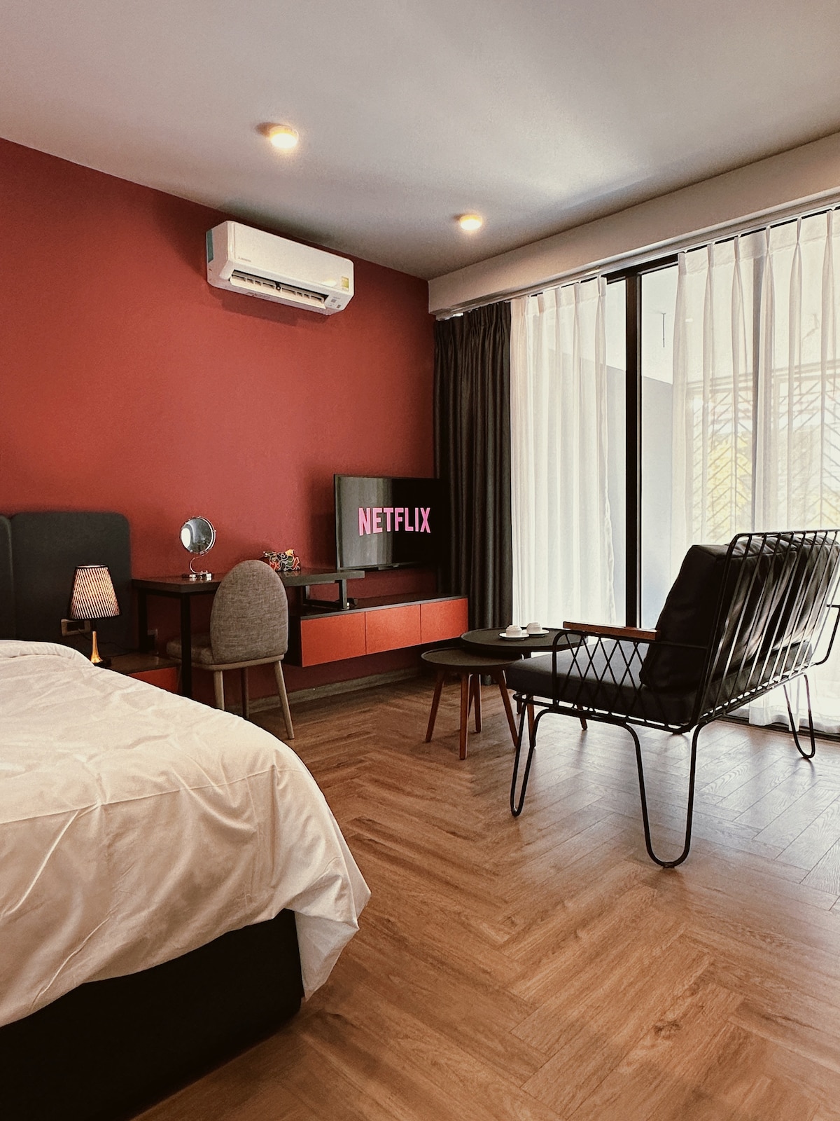 El apartamento: • 1 cama | 1 baño | 2 ventanas • An Hai Bac, Son Tra, Da Nang. • A 5 minutos de la playa de My Khe. • A 7 minutos del centro de Danang • Corto plazo | Largo plazo El edificio: • 6 plantas. • Jardín en la planta baja. • Piscina en la azotea. Como apartamento con un diseño único en todo, tiene una distribución encantadora, diseño de color emergente, adecuado para ti que viajas solo, parejas o parejas de amigos. — ESPACIOS TUK TAK Espacios compartidos ♡