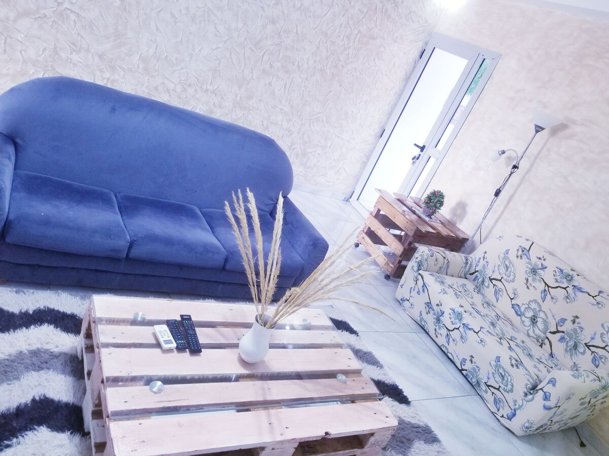 Salon spacieux avec 2 salles d'eau, 2 toilettes, cuisine équipée, 1 lit double, IPTV et Wi-Fi inclut ! Ce salon est parfait pour comme espace de détente et de travail. L’appartement offre : Deux salles d'eau pour plus de practicité. Une cuisine entièrement équipée pour préparer et savourer vos repas sur place. Wi-Fi haut débit inclus pour une connectivité optimale, de vos moments de détente et de divertissement. Un espace complet et confortable à ne pas manquer !