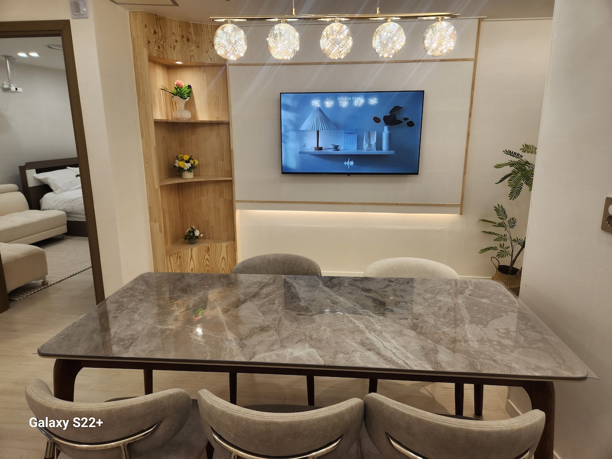 저희숙소는 편안하고 깨끗한 침구류와 숙소청결에 최선을 다하고 있습니다 또한 힐링의 공간이 되도록 안마의자를 구비하고 카페분위기의 거실을 준비했습니다 :) 잠시 머무르는 공간이지만 안락한 쉼이 될 수 있도록 최선을 다하고 있사오니~ 커플, 출장, 가족여행등 힐링이 필요하신 모든 분들 어서오세요~ 환영합니다!! * 저희 숙소는 게스트분들께서 편안한 숙박이 되시도록 매번 깨끗하게 준비해 드리고 있습니다!!