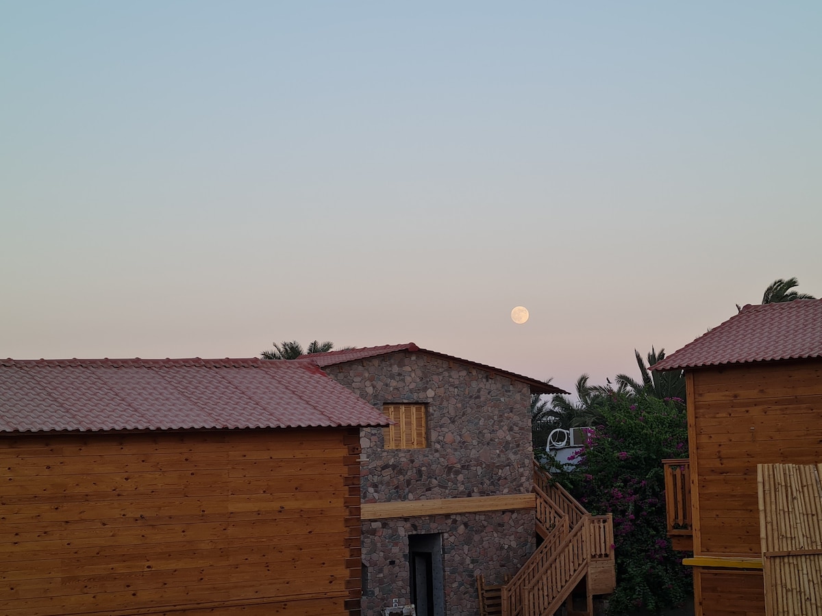 Este alojamiento único tiene personalidad propia. Hecho de materiales naturales y tonos suaves, nuestro espacio te proporcionará relajación y una estancia de alta calidad en un tranquilo y enorme jardín verde. Aquí tendrás un lugar para recargar energías, meditar y alojarte en un lugar tranquilo, conectado con la naturaleza del mágico Sinaí. Los huéspedes pueden utilizar el espacio al aire libre y la piscina, pero la piscina es de temporada (solo en verano).