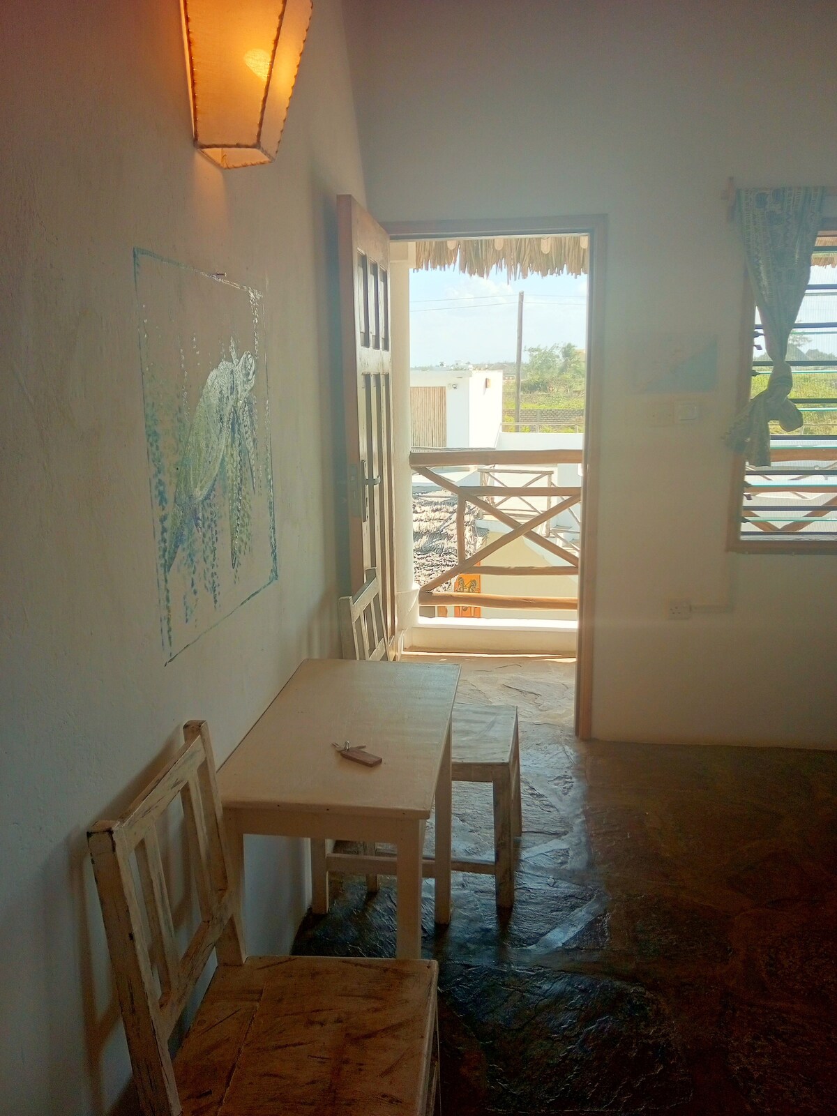 This charming, one-of-a-kind place is located just 5 mins walk from Jacaranda beach, 7kms north of Watamu. Kijiwe Villas consists of 2 double bedrooms downstairs, one room with 2 double beds and living room upstairs and a one-bedroom cottage. All rooms are en-suite. Set in a large lush garden with lots of outdoor seating. A perfect place to relax for a romantic getaway or enjoy with a group of friends. We also own a wonderful beach restaurant where you can enjoy a free sun bed.